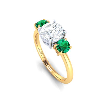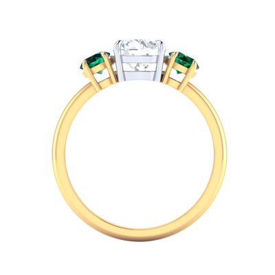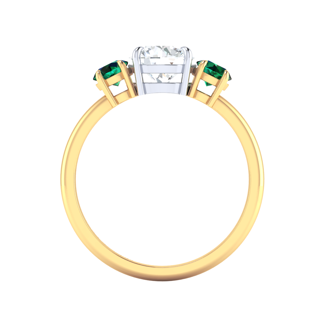 Lab Grown Solar Diamond Trilogy Round Cut Diamond and Emerald 18k Yellow Gold Ring