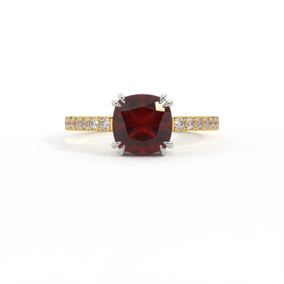 Solitaire Cushion Garnet 18K Yellow Gold Ring