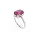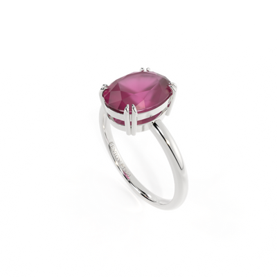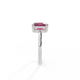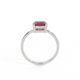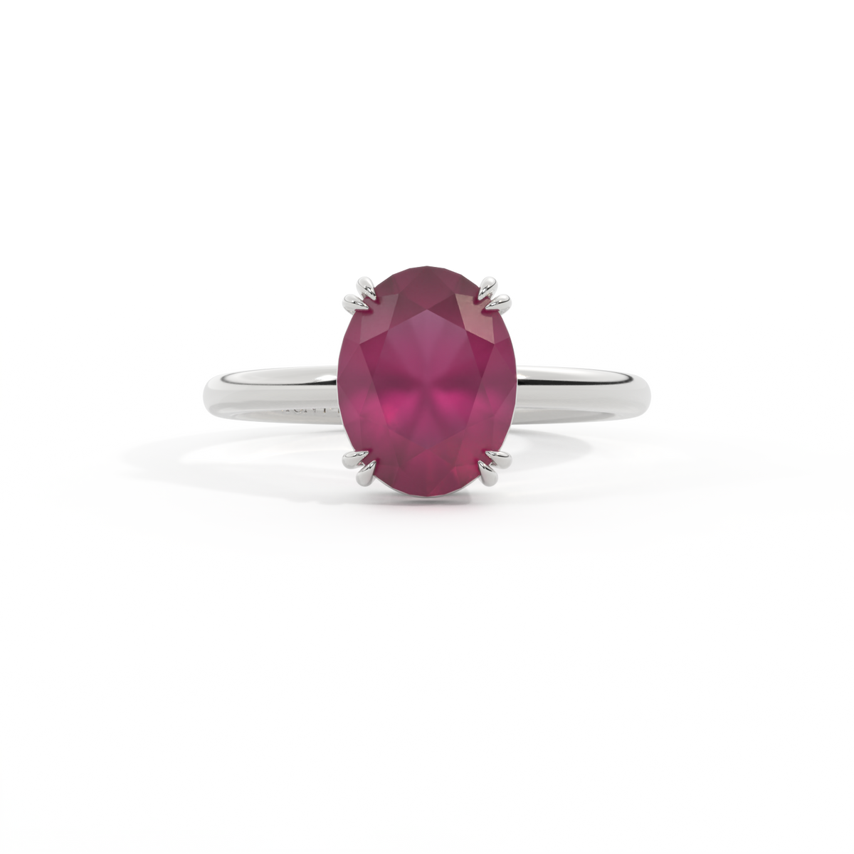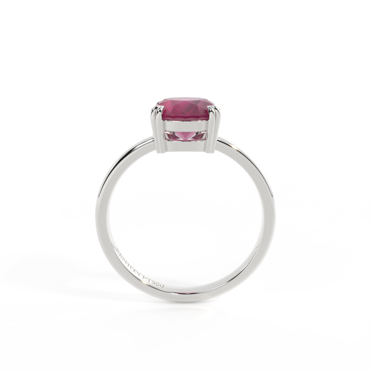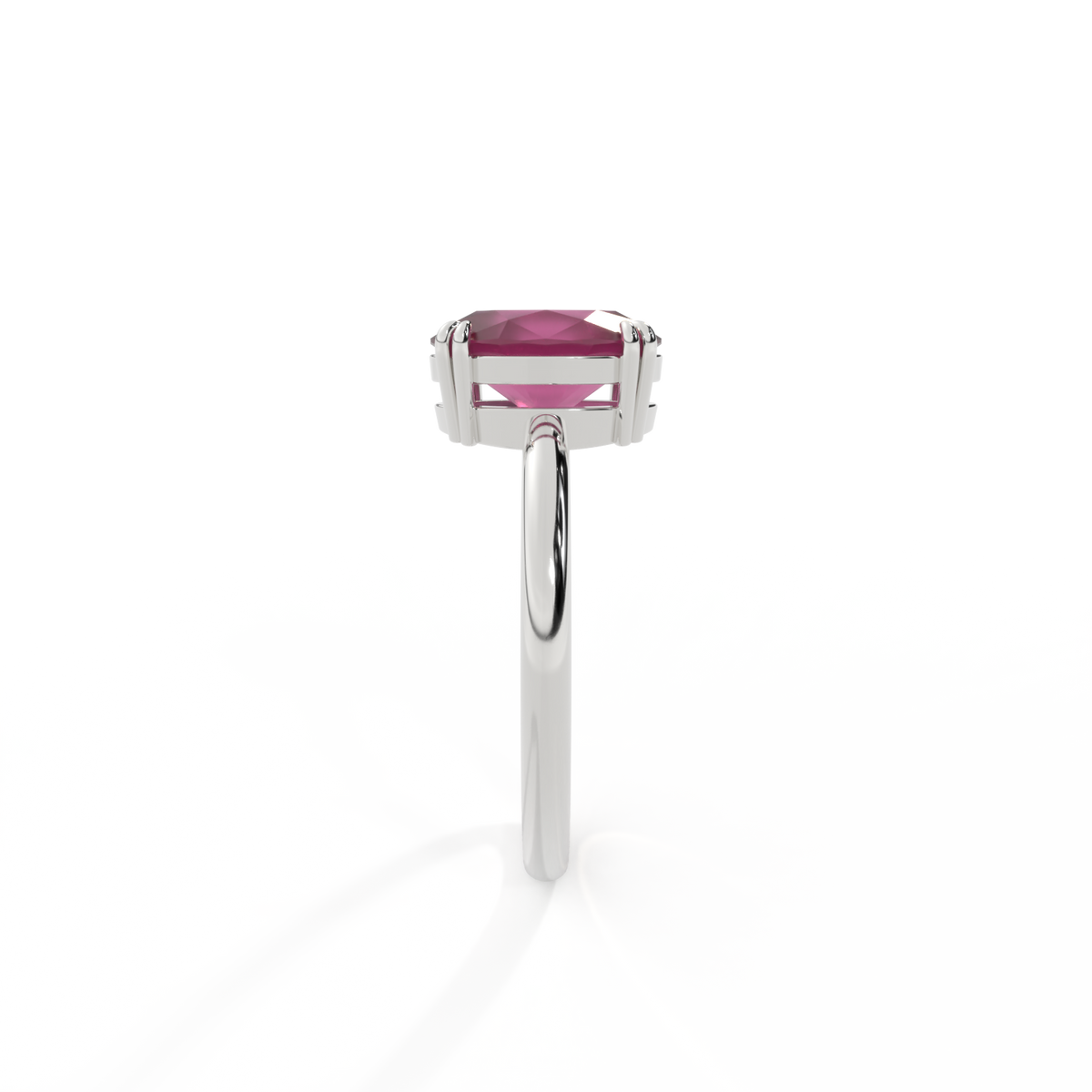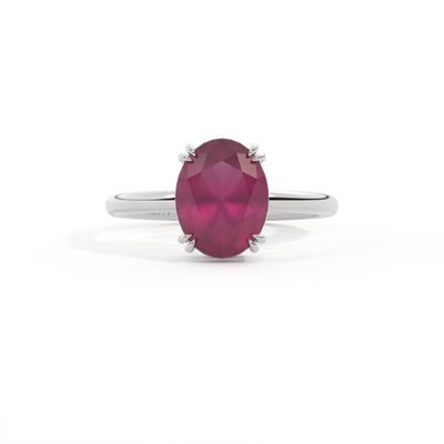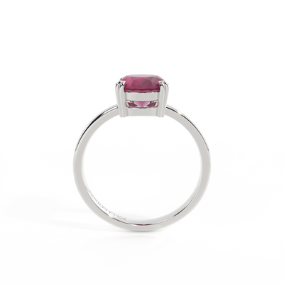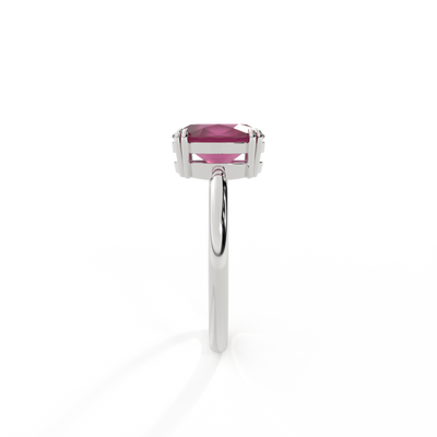 All of our rings are available in blue sapphire, ruby, emerald, pink sapphire, yellow sapphire, garnet and aquamarine. We offer three metals, 18K rose gold, 18K yellow gold and platinum. The center stones are available in four cuts, round, cushion, oval and emerald cut and five sizes for each cut and style.