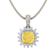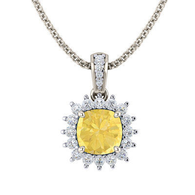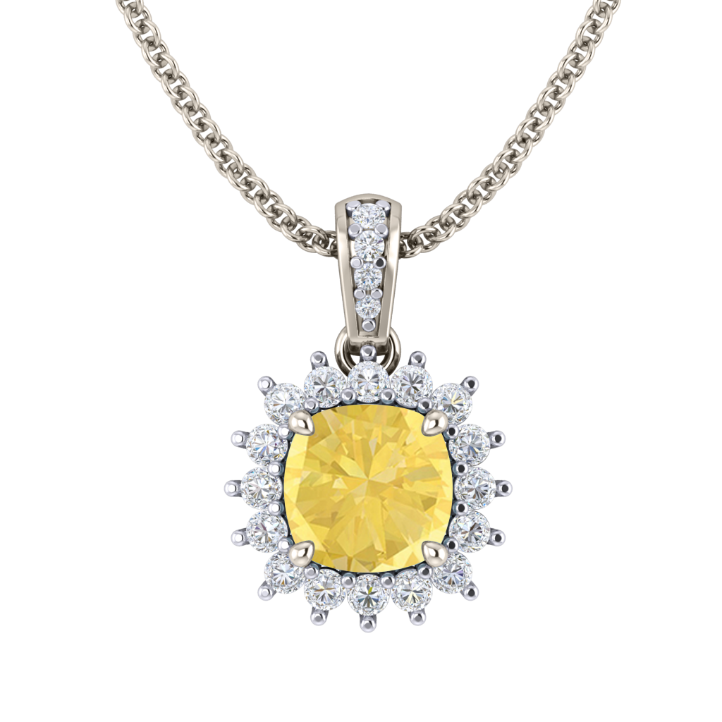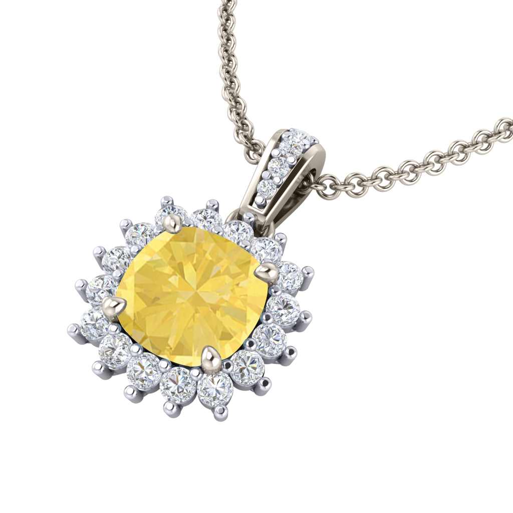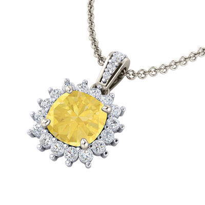 Sparkle from night to day with your Yellow Sapphire Star Pendant Necklace. This pendant necklace features a single G/H color and VS clarity diamond halo and sparkling diamond-encrusted bale holding your Cushion cut Yellow Sapphire stone.