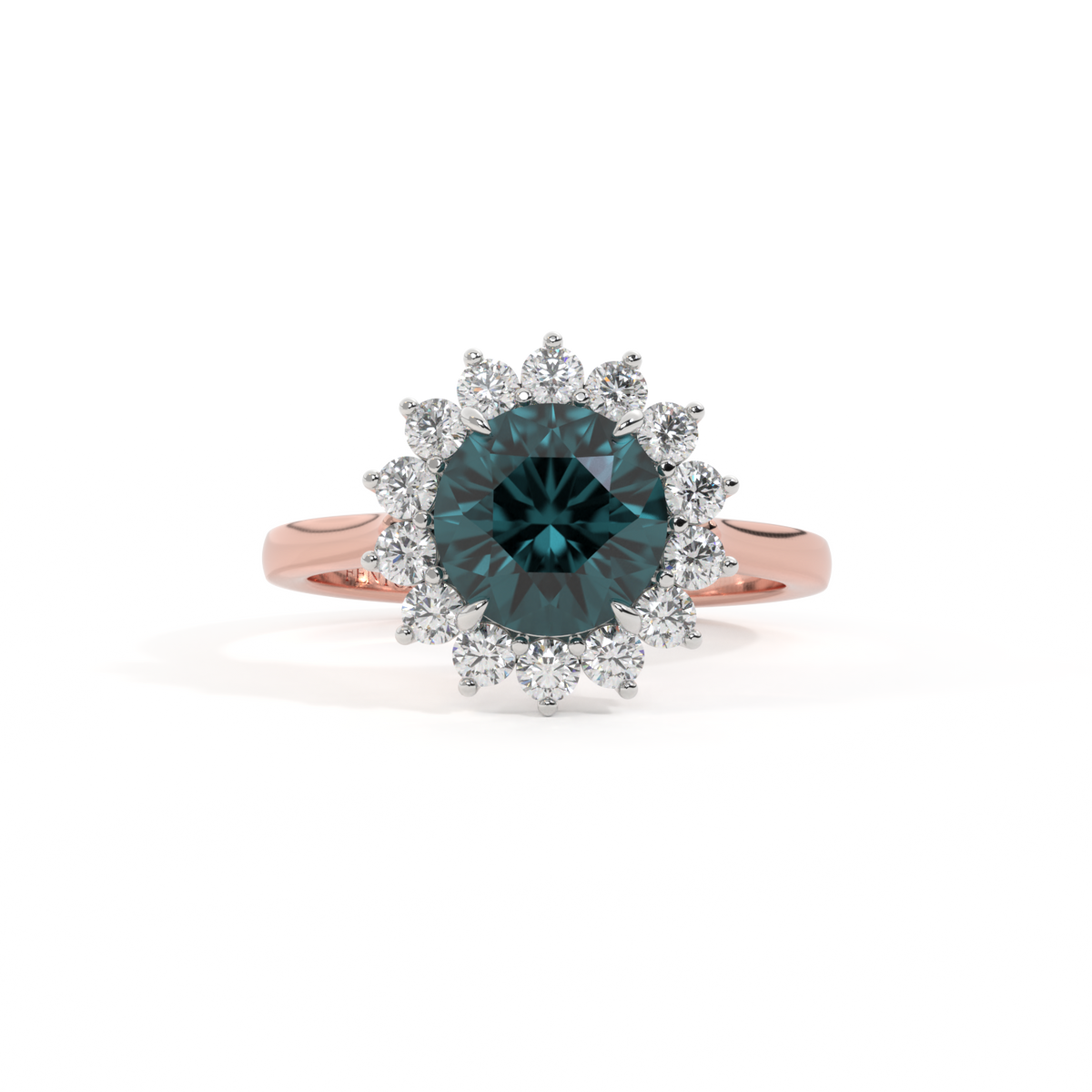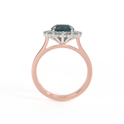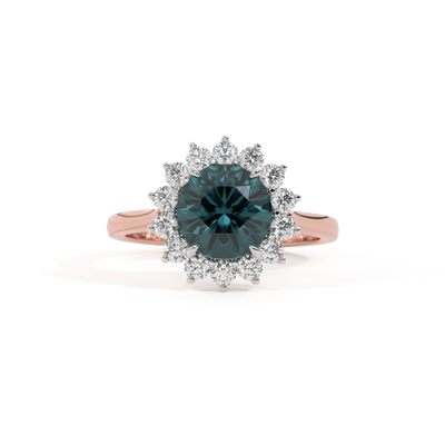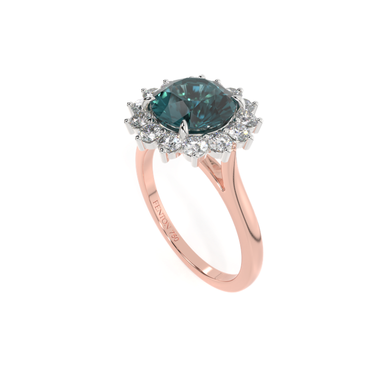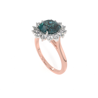 Star Round Teal Sapphire 18K Rose Gold Ring