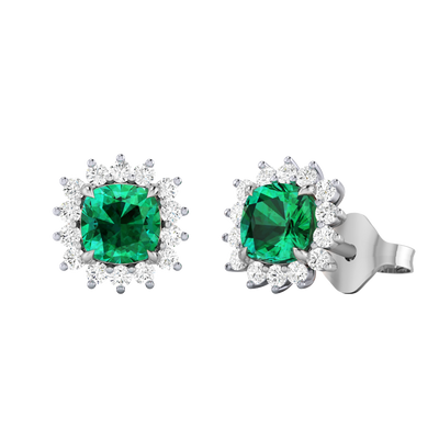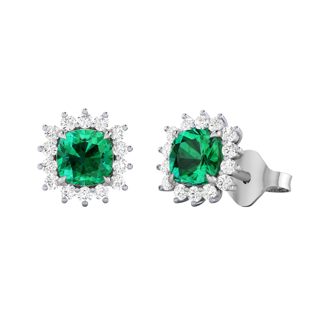 It's time to get starry eyed for the Star Stud Earrings. Drawing on celestial inspiration, this is a timeless design which is sure to enchant. Featuring a sparkling center Emerald stone in Cushion, this design is complimented by a halo of triple prong-set G/H VS diamonds, which create the majestic star aesthetic. Set in solid, recycled 18K White Gold, the Star Stud earrings are the perfect choice to add to your Jewelry collection and to elevate any outfit.