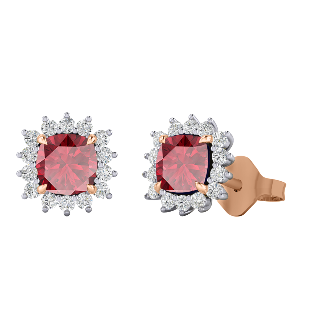 Star Stud Cushion Ruby 18K Rose Gold Earrings