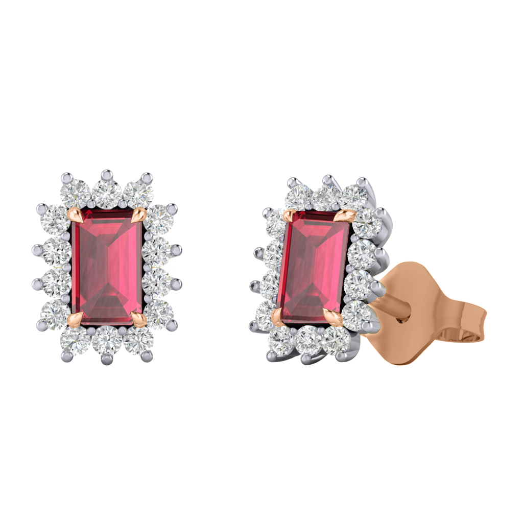 It's time to get starry eyed for the Star Stud Earrings. Drawing on celestial inspiration, this is a timeless design which is sure to enchant. Featuring a sparkling center Ruby stone in Emerald, this design is complimented by a halo of triple prong-set G/H VS diamonds, which create the majestic star aesthetic. Set in solid, recycled 18K Rose Gold, the Star Stud earrings are the perfect choice to add to your Jewelry collection and to elevate any outfit.