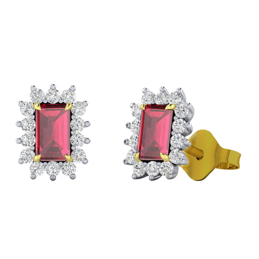 It's time to get starry eyed for the Star Stud Earrings. Drawing on celestial inspiration, this is a timeless design which is sure to enchant. Featuring a sparkling center Ruby stone in Emerald, this design is complimented by a halo of triple prong-set G/H VS diamonds, which create the majestic star aesthetic. Set in solid, recycled 18K Yellow Gold, the Star Stud earrings are the perfect choice to add to your Jewelry collection and to elevate any outfit.