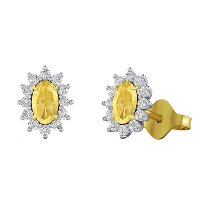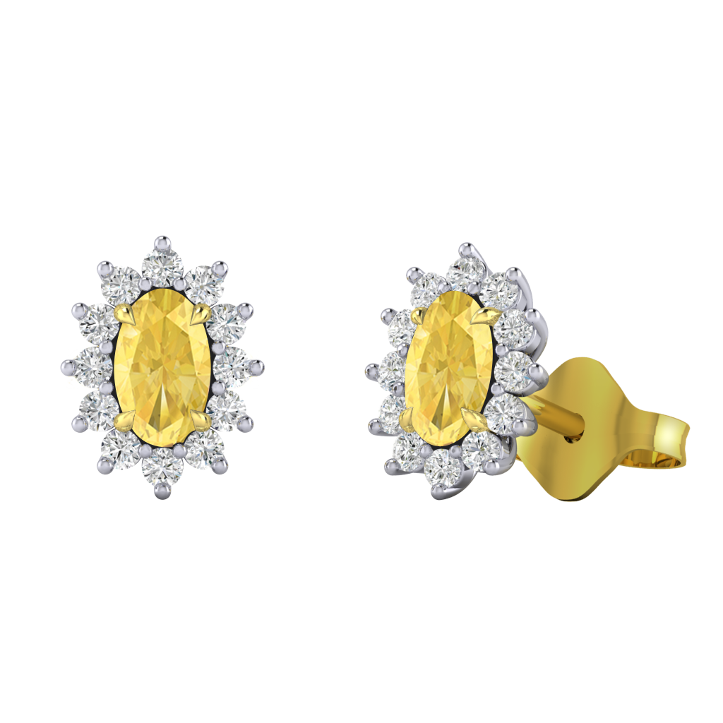 Star Stud Oval Yellow Sapphire 18K Yellow Gold Earrings