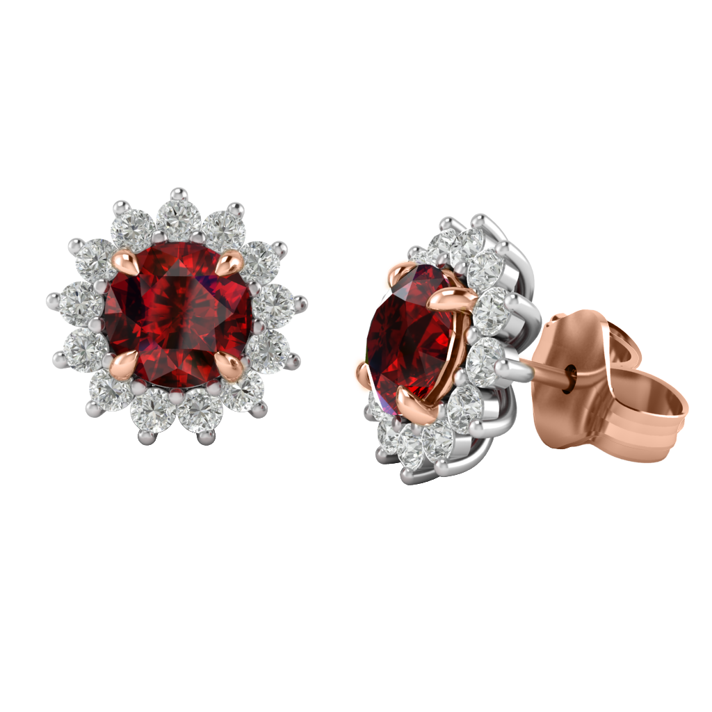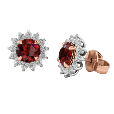 Star Stud Round Ruby 18K Rose Gold Earrings