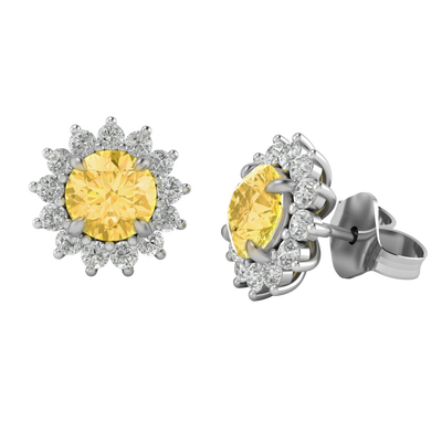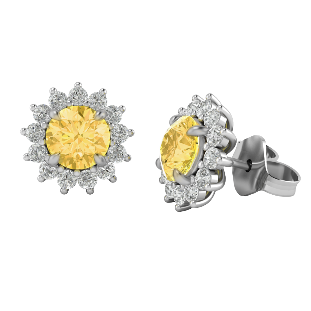 Star Stud Round Yellow Sapphire 18K White Gold Earrings
