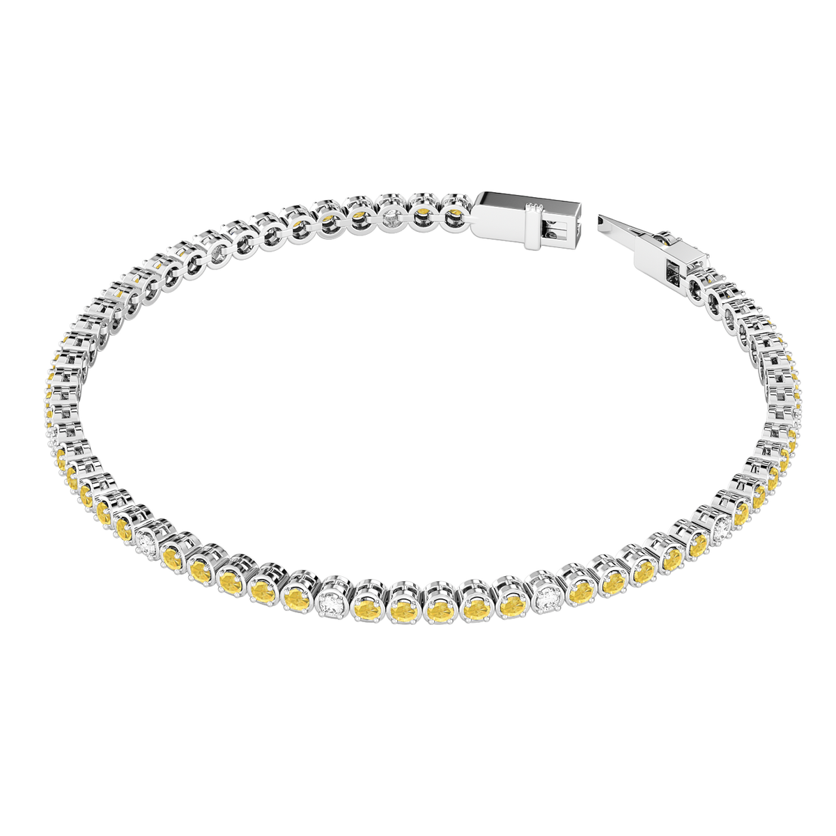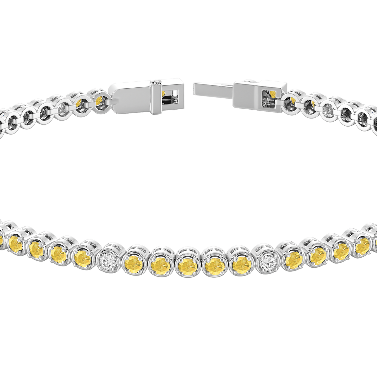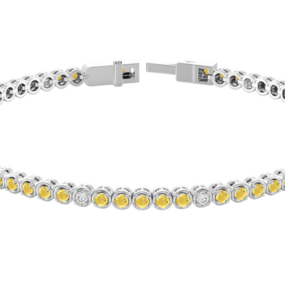 The Yellow Sapphire and diamond stones are round-cut for maximum brilliance and magnificent sparkle. Each individual stone has been carefully set in a prong setting. The Tennis bracelet measures 7 inches in length with a traditional box clasp for extra safety and an elegant and slender fit around the wrist.