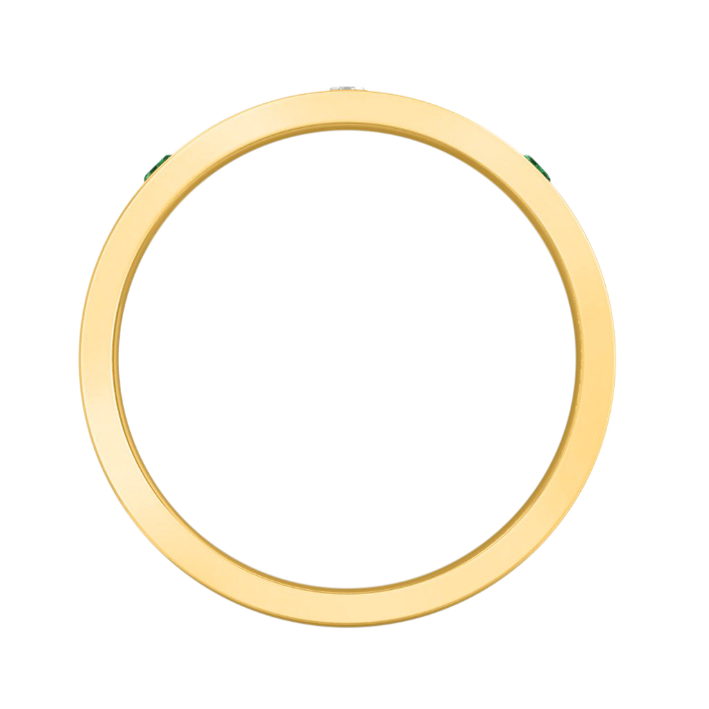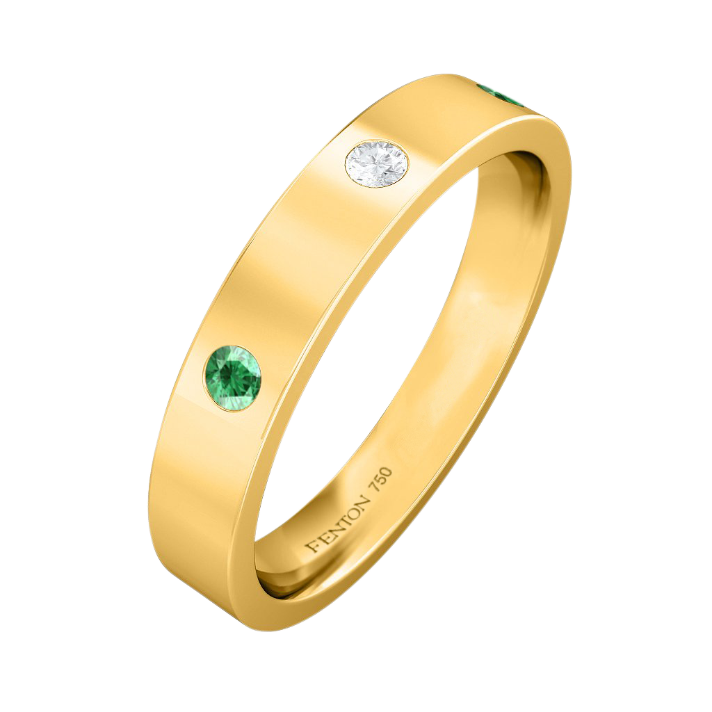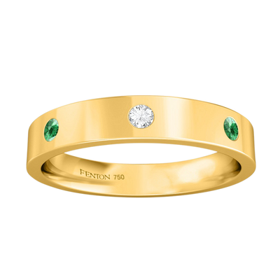 Have fun creating a stand out piece that is guaranteed to draw the eye with our three stone band. This band is 4mm wide and made from 18K Yellow Gold.