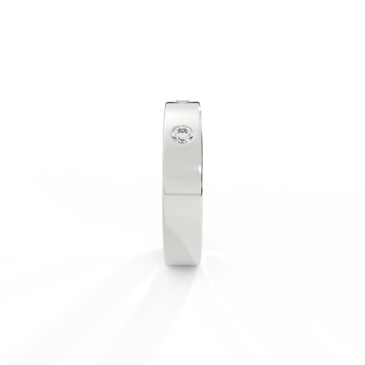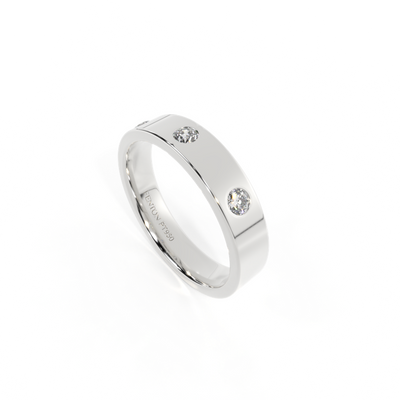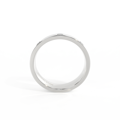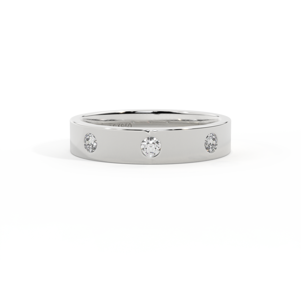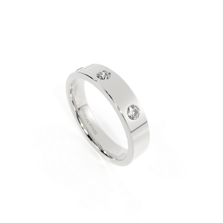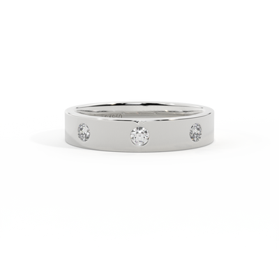 Have fun creating a stand out piece that is guaranteed to draw the eye with our three stone band. This band is 4mm wide and made from Platinum.