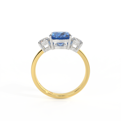Trilogy Oval Blue Sapphire 18K Yellow Gold Big