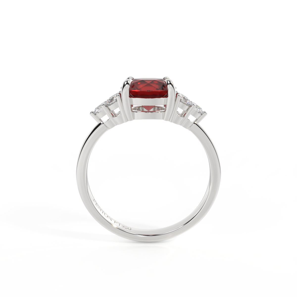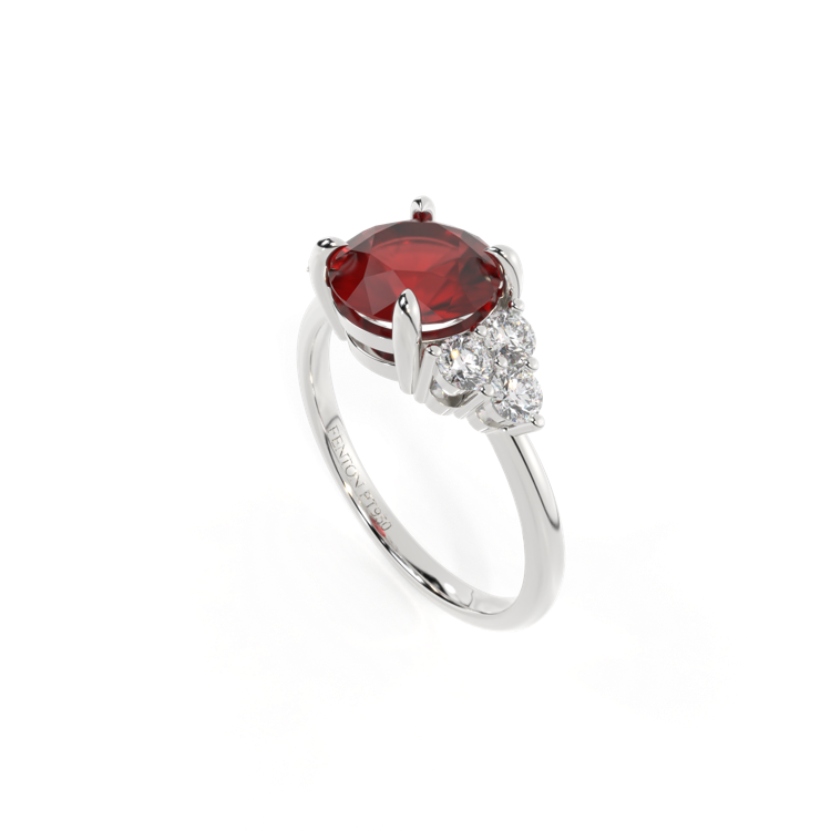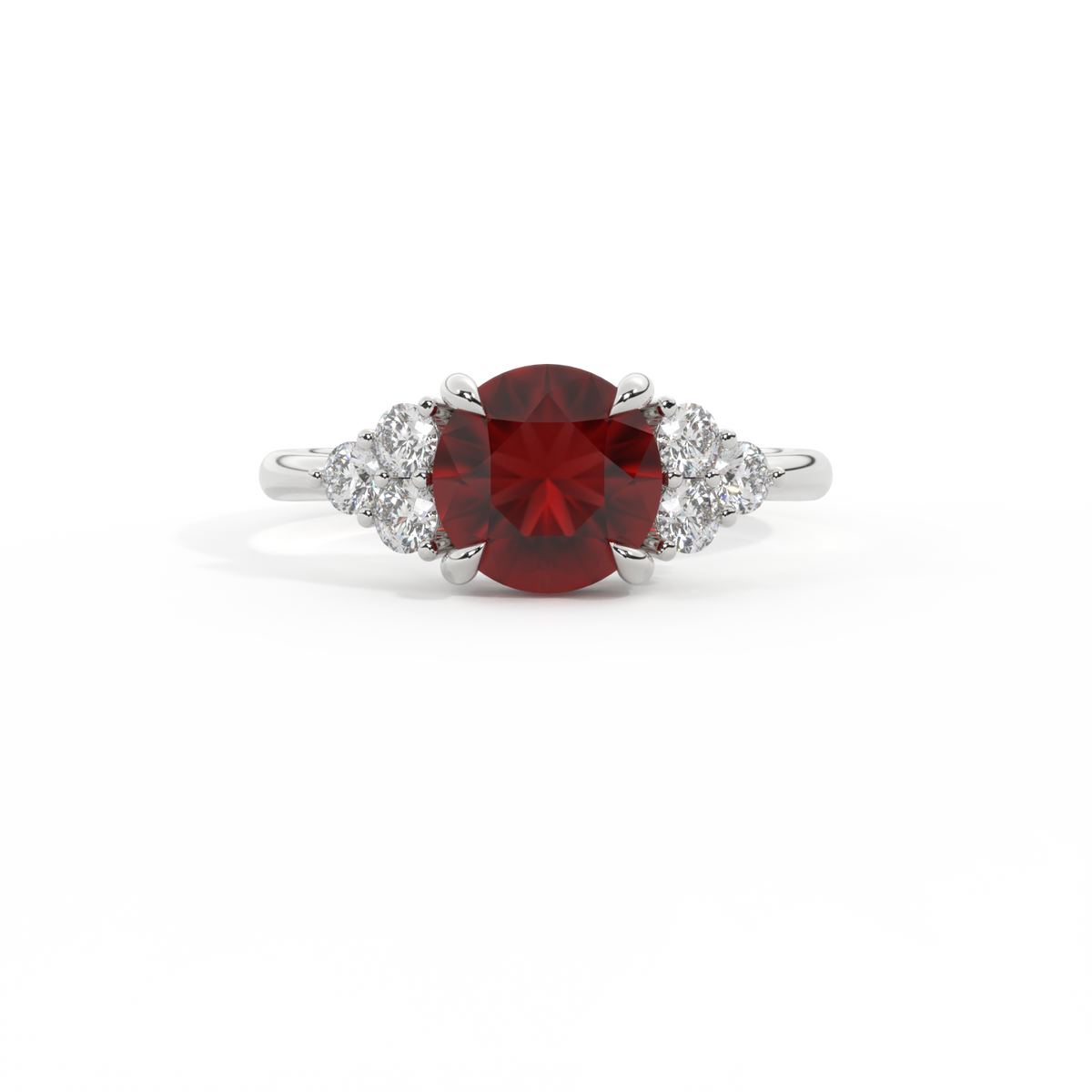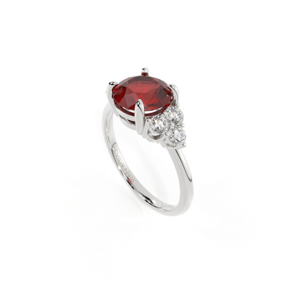 Trefoil Round Garnet Platinum Ring
