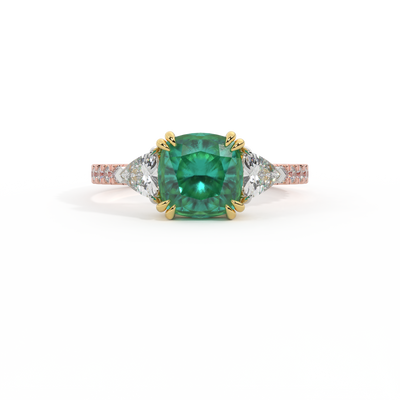 Trilogy Cushion Emerald 18K Rose Gold Ring