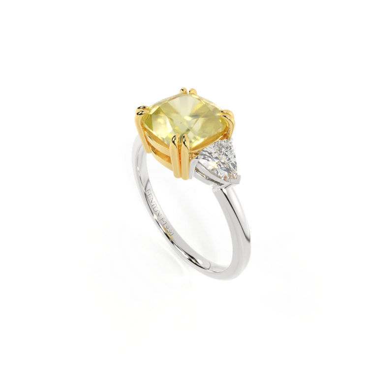 Trilogy Cushion Yellow Sapphire Platinum Ring