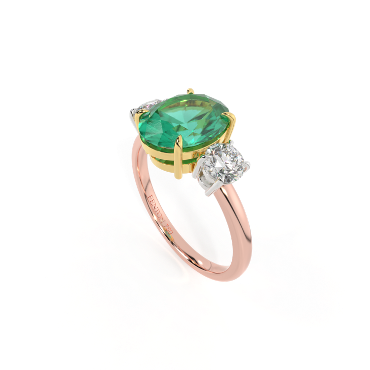 Trilogy Oval Emerald 18K Rose Gold Ring