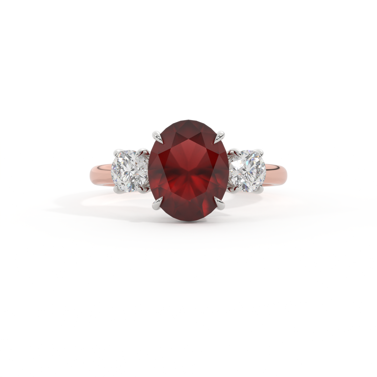 Trilogy Oval Garnet 18K Rose Gold Ring