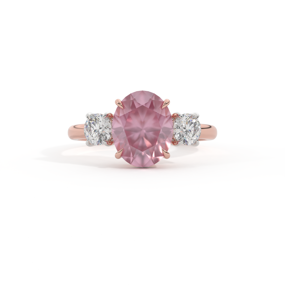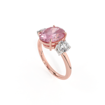 Trilogy Oval Pink Sapphire 18K Rose Gold Ring