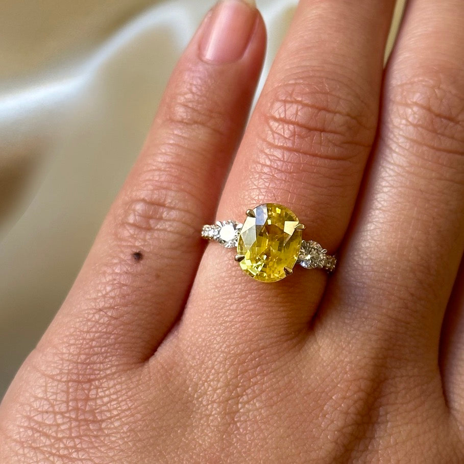 Trilogy Oval Yellow Sapphire Platinum Ring