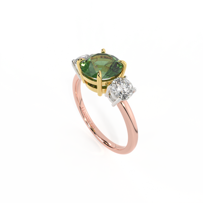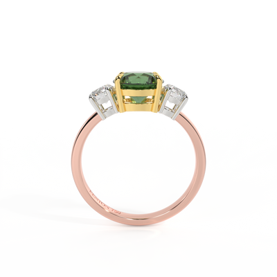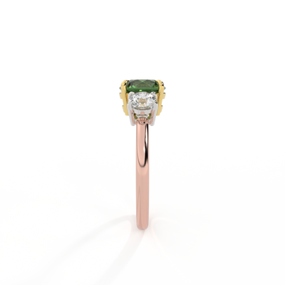 Trilogy Round Green Sapphire 18K Rose Gold Ring