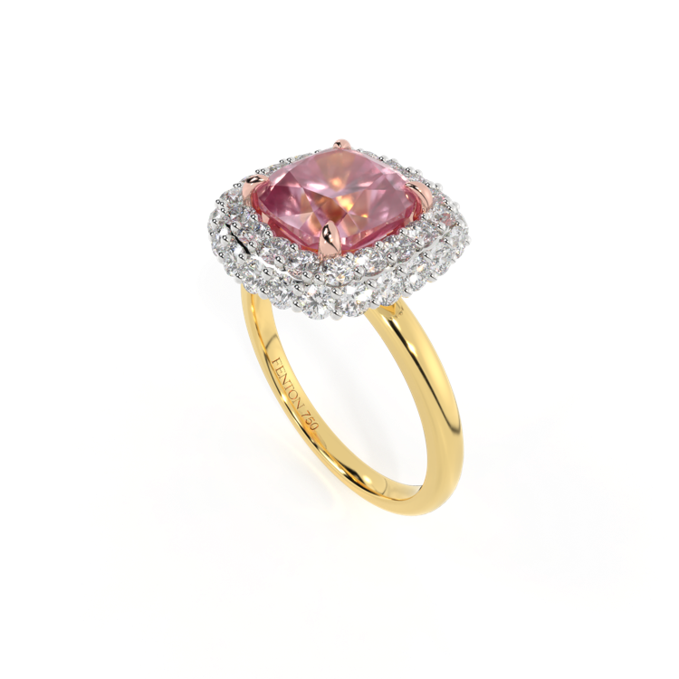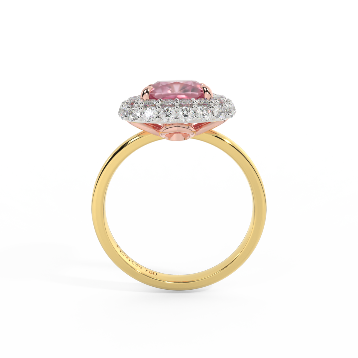 Vintage Cushion Pink Sapphire 18K Yellow Gold Ring