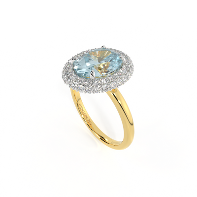 Vintage Oval Aquamarine 18K Yellow Gold Ring