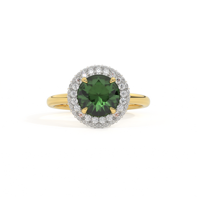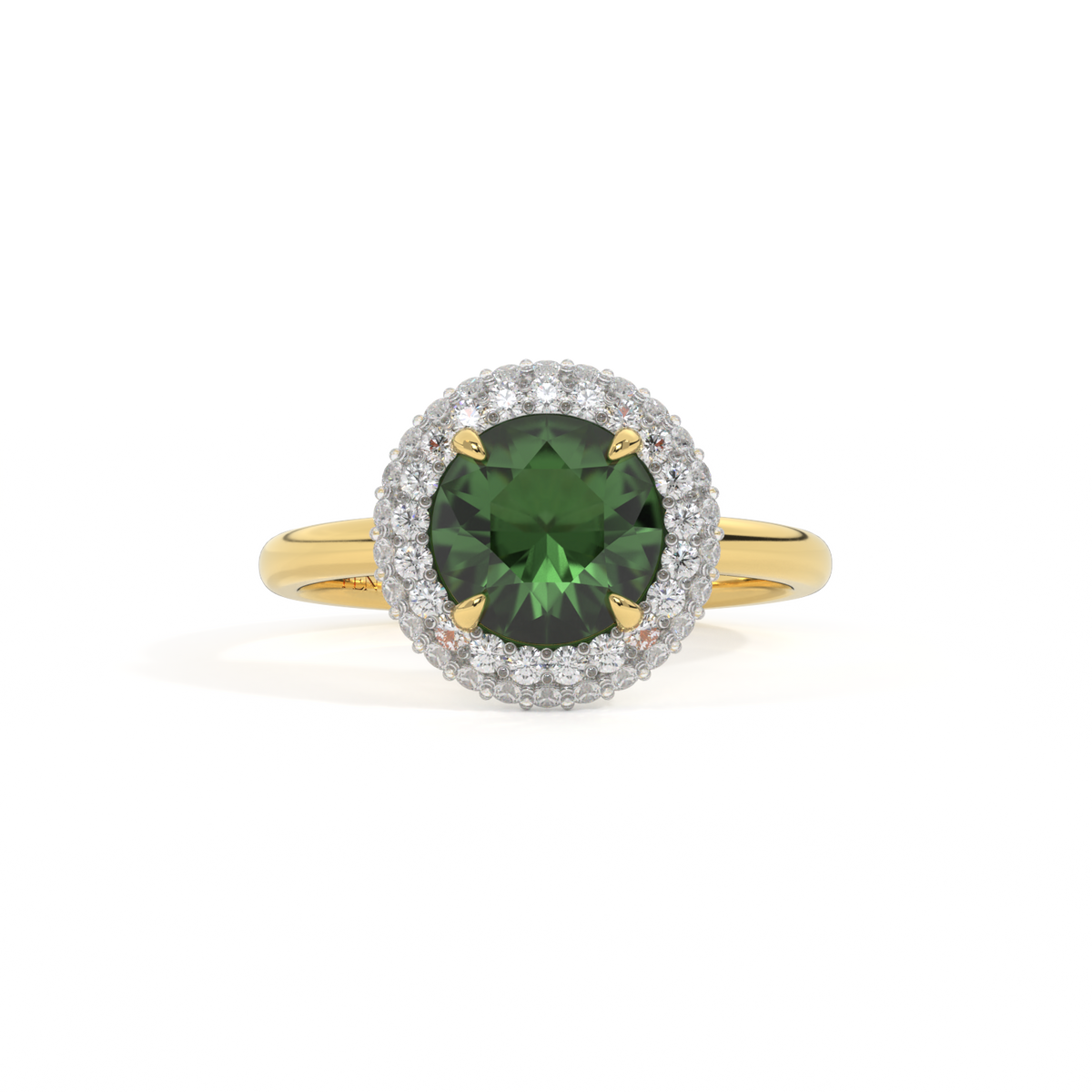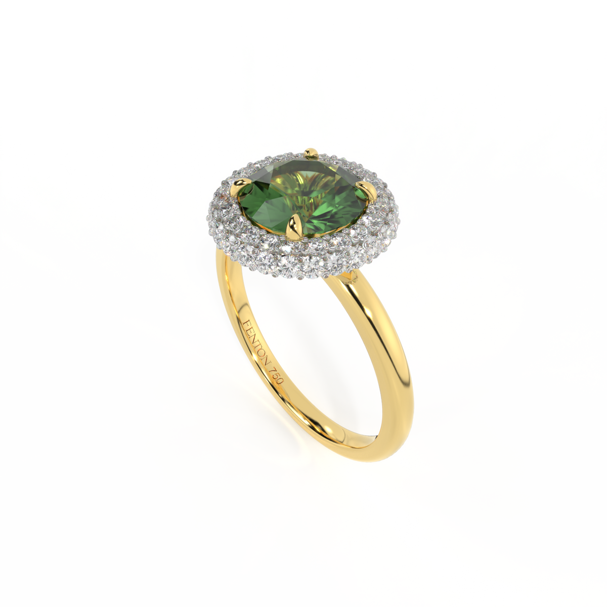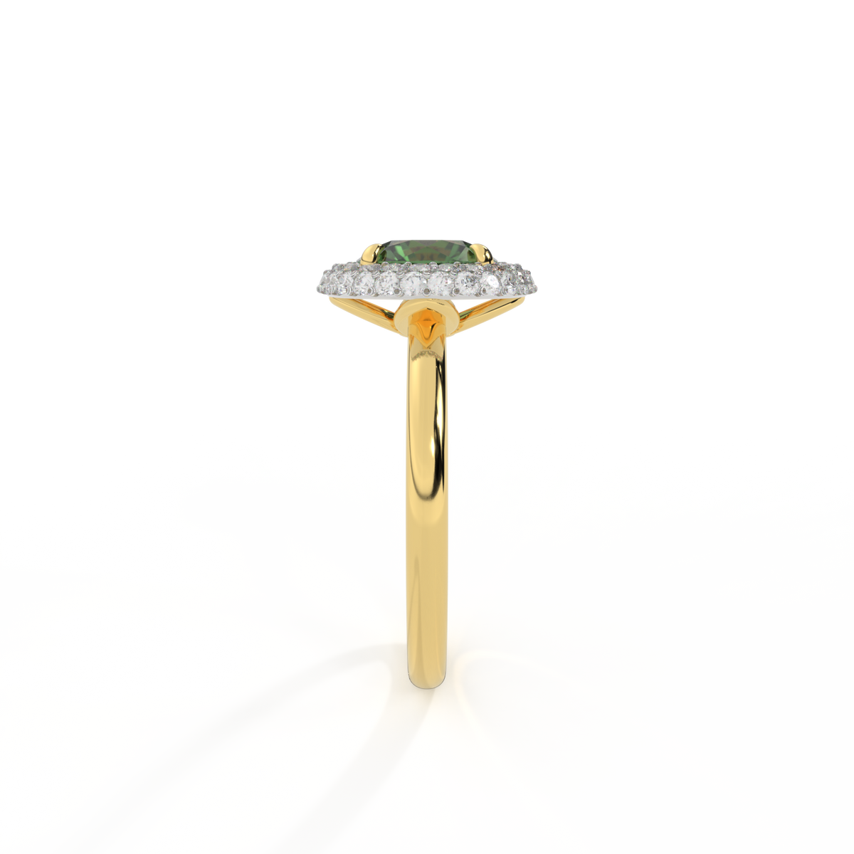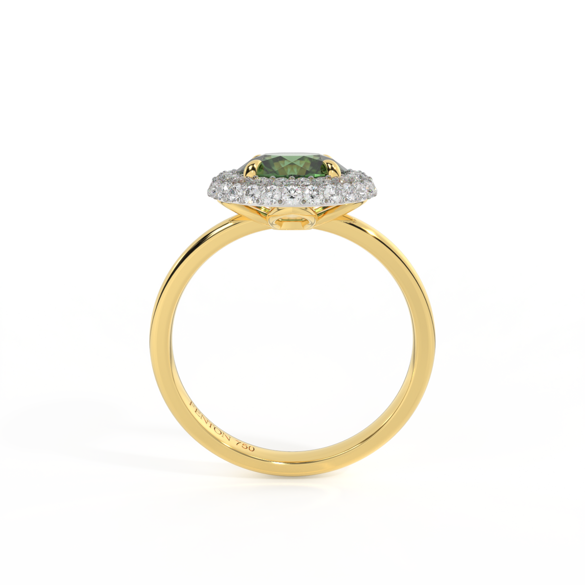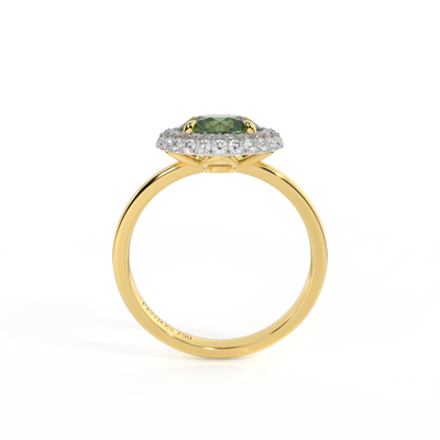 Vintage Round Green Sapphire 18K Yellow Gold Ring