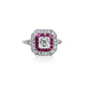 Art Deco style ruby and diamond square cluster ring, the central square-cut diamond within a double border of calibré-cut rubies and old mine-cut diamonds, to the ridged hoop, size M