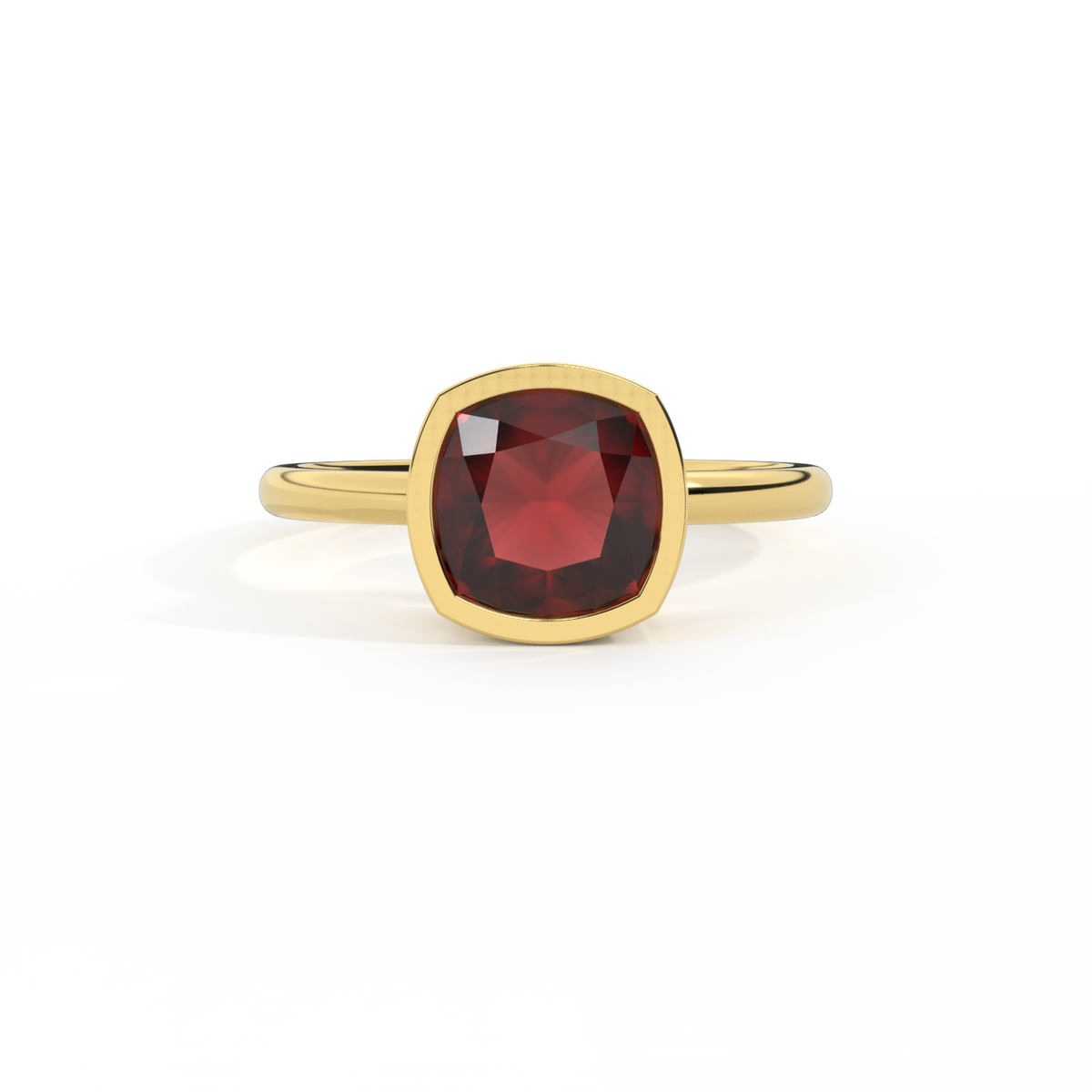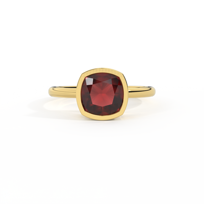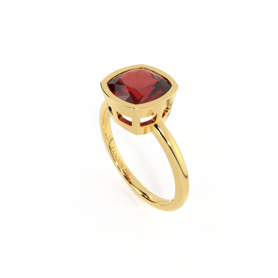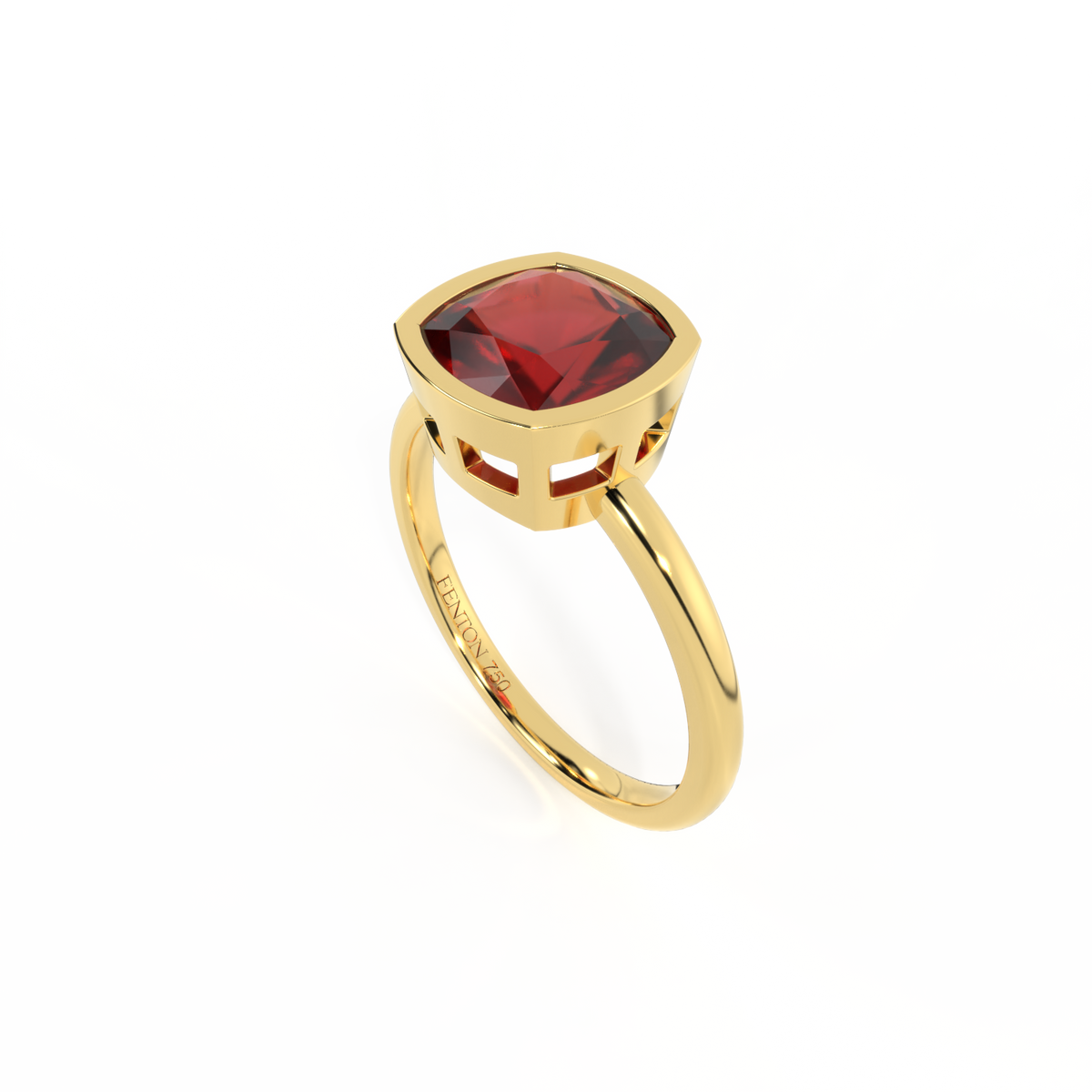 Bezel Cushion Garnet 18K Yellow Gold Ring