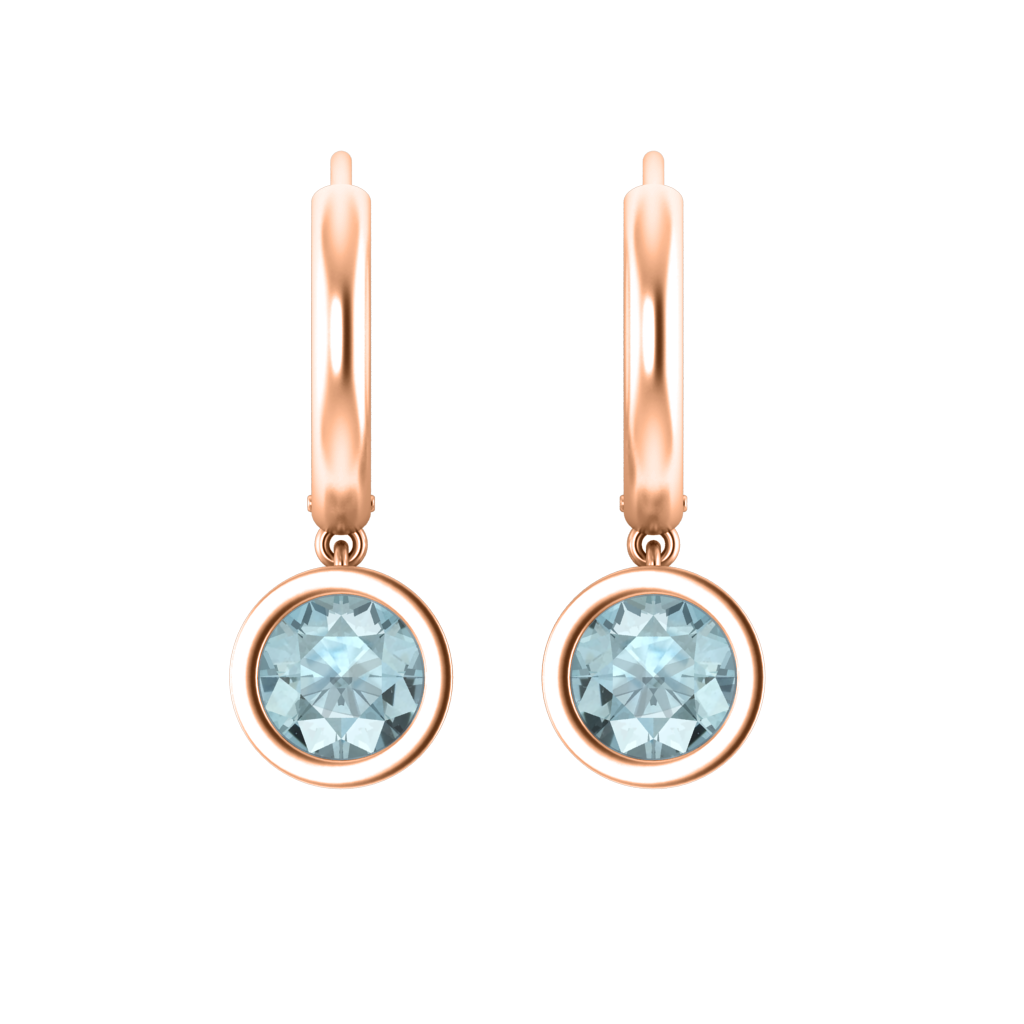 Bezel Drop Round Cut Aquamarine 18K Rose Gold Earrings