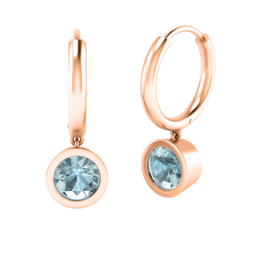 The Bezel Drop Aquamarine Earrings take a modern twist on our Classic Drop Earrings. This subtle yet elegant design features a sparkling Aquamarine crafted in an open, modern bezel setting. A classic plain 18K Rose Gold huggie hoop will carry your glistening Round cut Aquamarine drop making it the perfect earring to sparkle as a pair or wear solo as part of an earring stack.