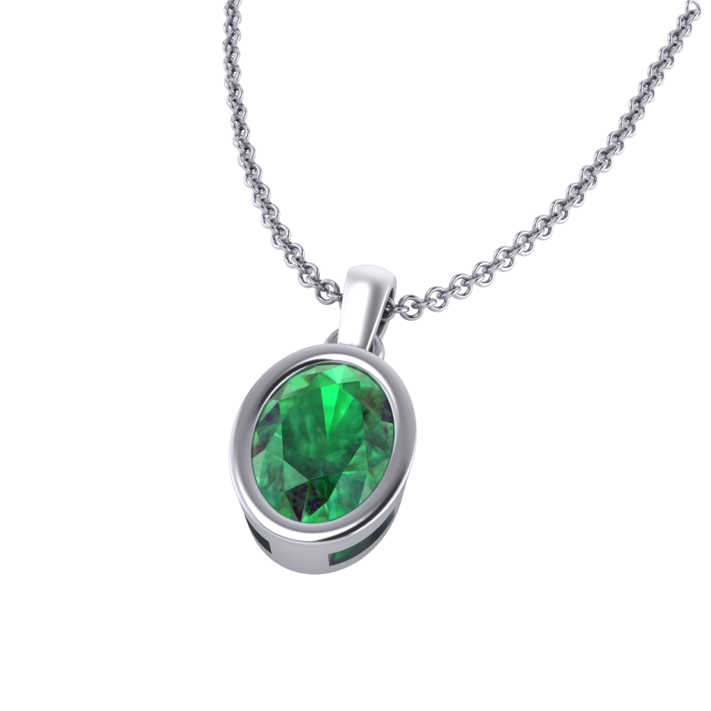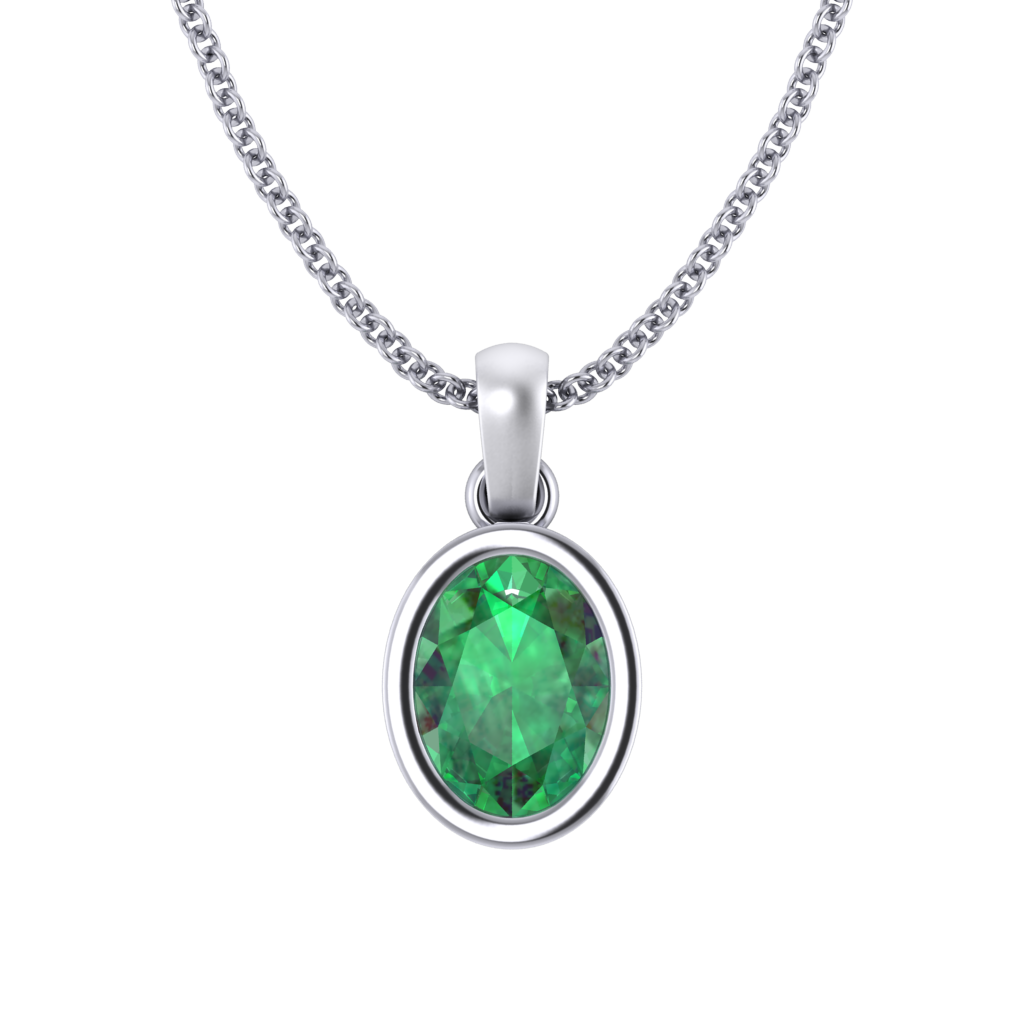 Le collier à pendentif Bezel allie minimalisme et élégance moderne. Le pendentif Ovale taillé en Émeraude est serti dans un anneau 18K Or Blanc et s'équilibre sans effort sur une chaîne assortie.