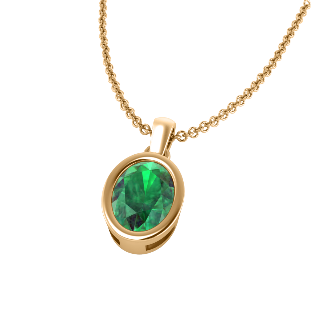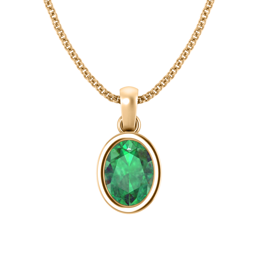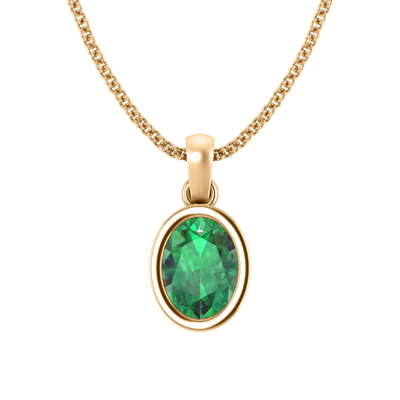 Le collier à pendentif Bezel allie minimalisme et élégance moderne. Le pendentif Ovale taillé en Émeraude est serti dans un anneau 18K Or Jaune et s'équilibre sans effort sur une chaîne assortie.