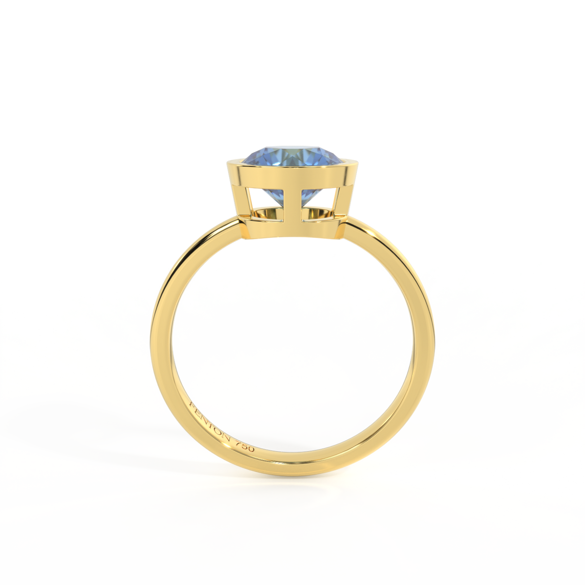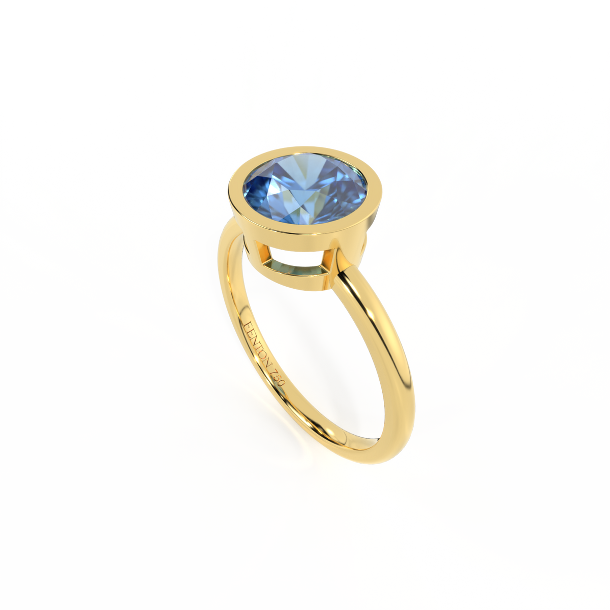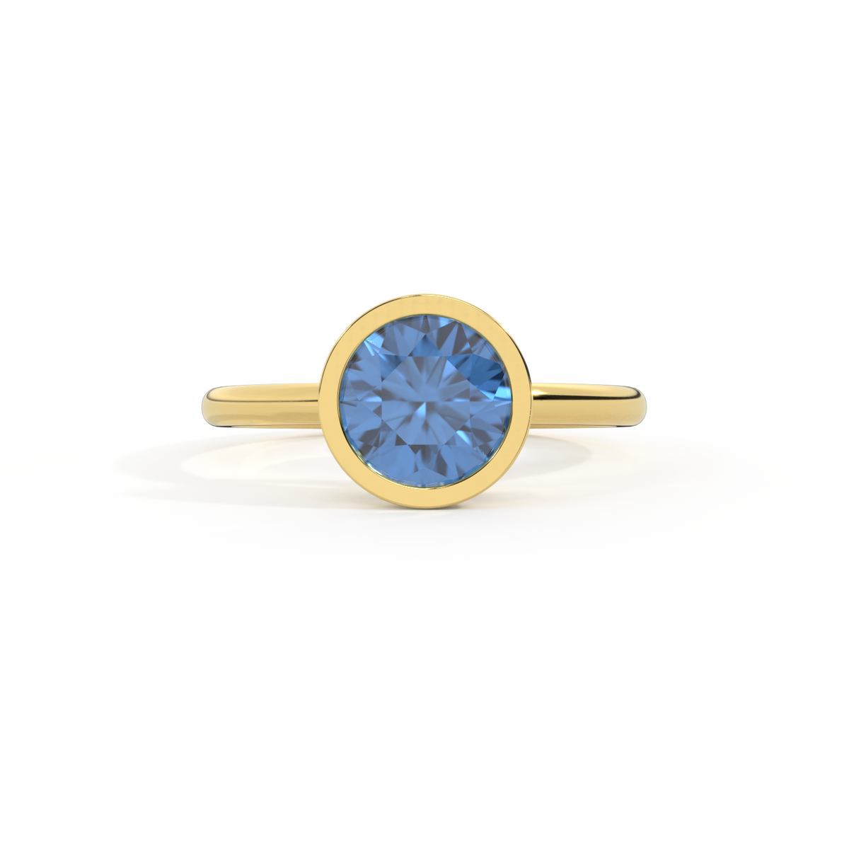 Bezel Round Blue Sapphire 18K Yellow Gold Ring