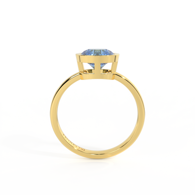 Le minimalisme rencontre le modernisme - les caractéristiques uniques de ce Rond cut Saphir Bleu sont mises en avant dans le Bezel. Une version moderne du solitaire, ce style encadre la pierre Saphir Bleu de 6 mm dans une monture sécurisée faite sur mesure, à la fois simple et frappante.