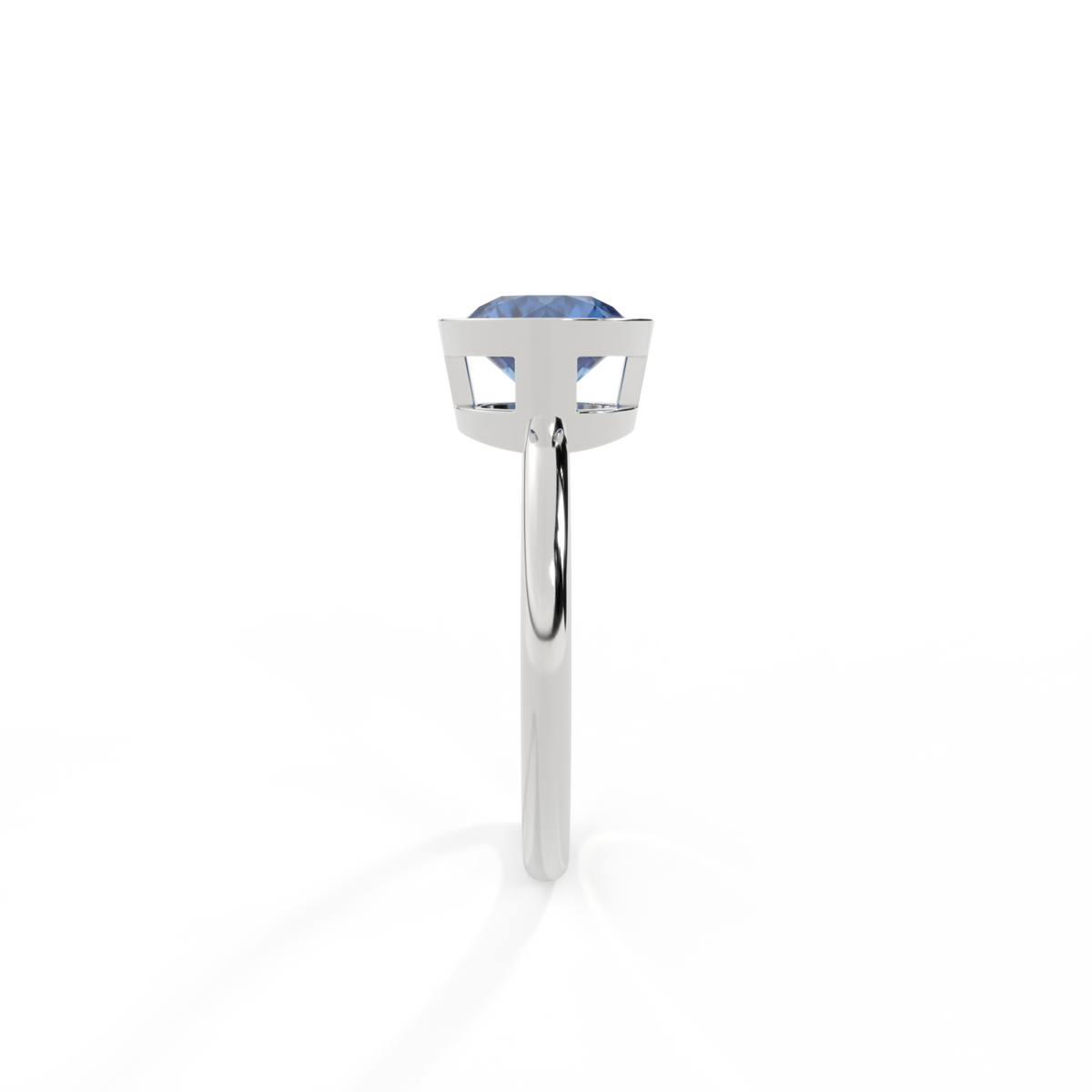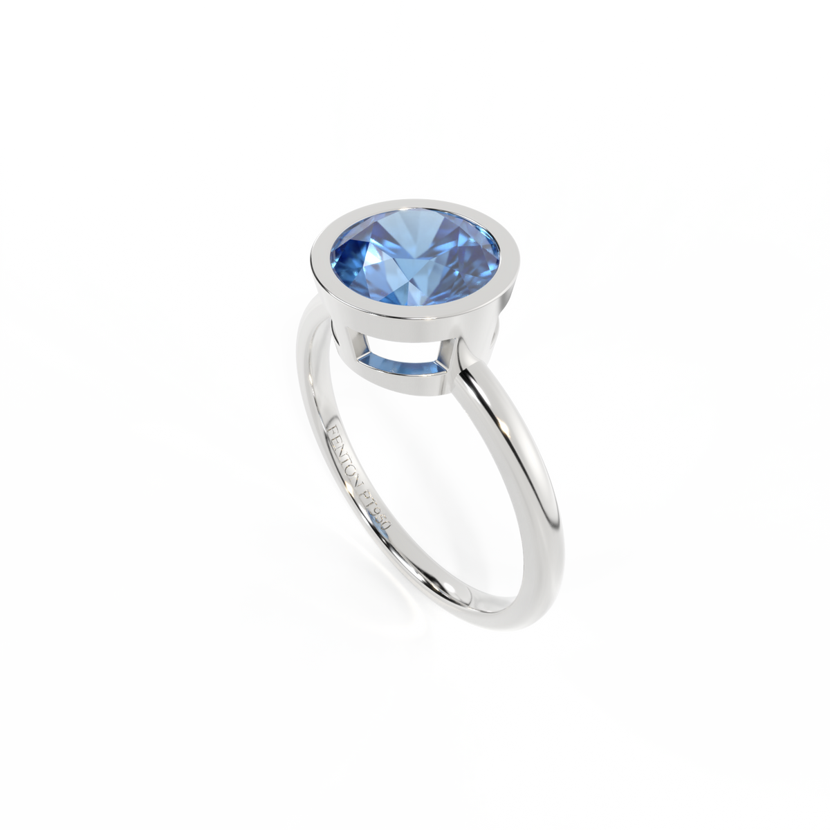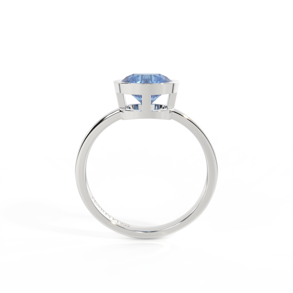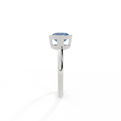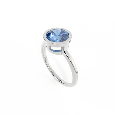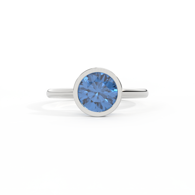 Le minimalisme rencontre le modernisme - les caractéristiques uniques de ce Rond cut Saphir Bleu sont mises en avant dans le Bezel. Une version moderne du solitaire, ce style encadre la pierre Saphir Bleu de 6 mm dans une monture sécurisée faite sur mesure, à la fois simple et frappante.