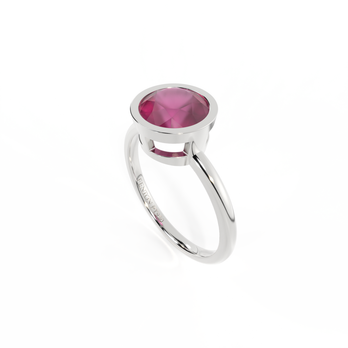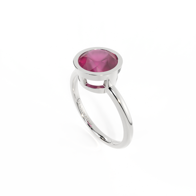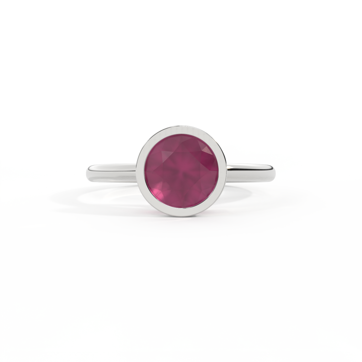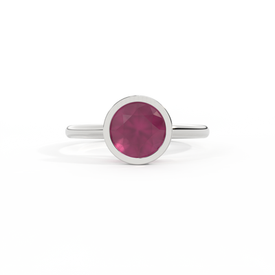 Le minimalisme rencontre le modernisme - les caractéristiques uniques de ce Rond cut Rubis sont mises en avant dans le Bezel. Une version moderne du solitaire, ce style encadre la pierre Rubis de 6 mm dans une monture sécurisée faite sur mesure, à la fois simple et frappante.