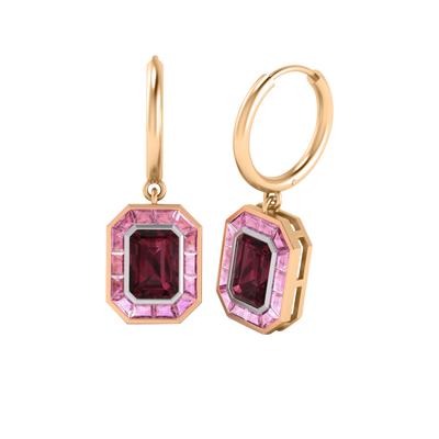 Deco Drop Emerald Garnet 18K Rose Gold Earrings
