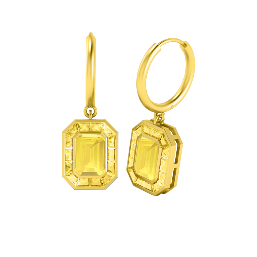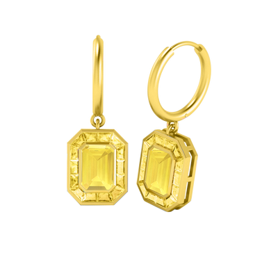 Deco Drop Emerald Yellow Sapphire 18K Yellow Gold Earrings