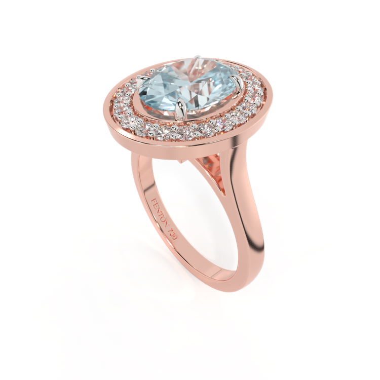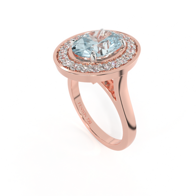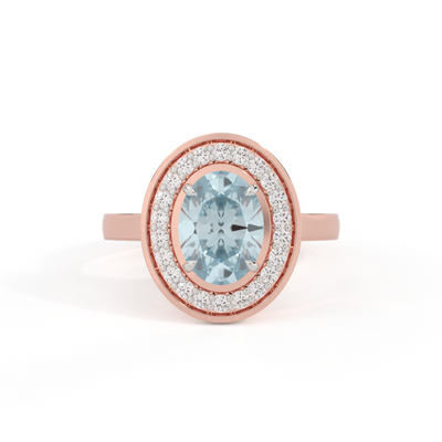 Deco Oval Aquamarine 18K Rose Gold Ring