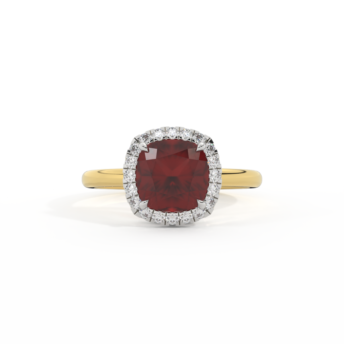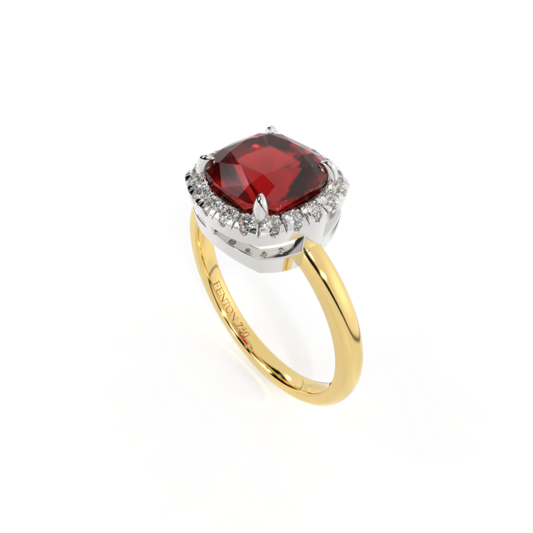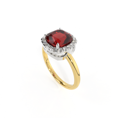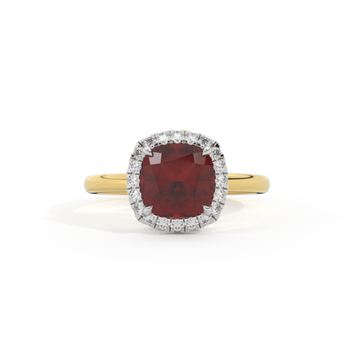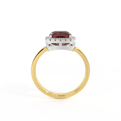 Halo Cushion Garnet 18K Yellow Gold Ring