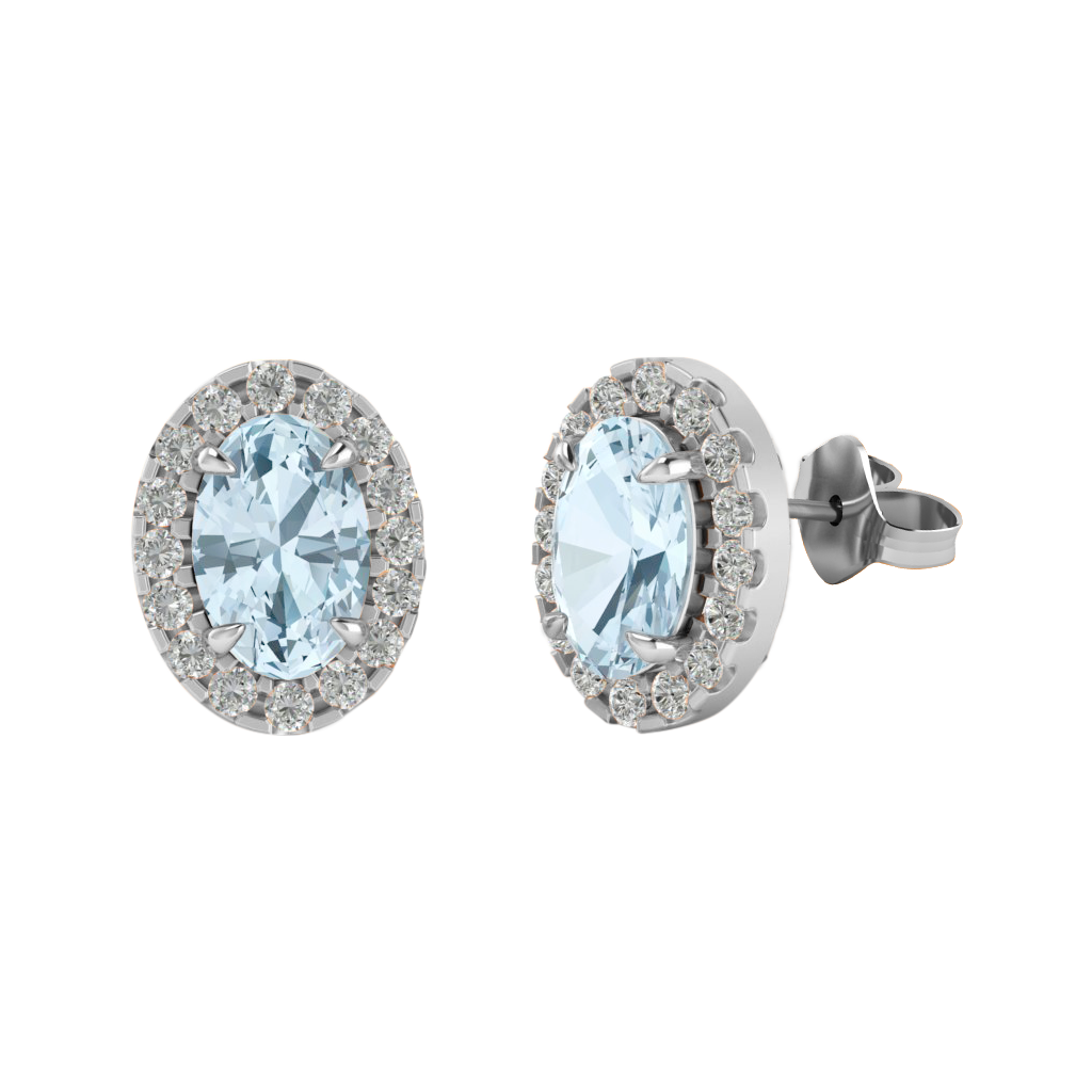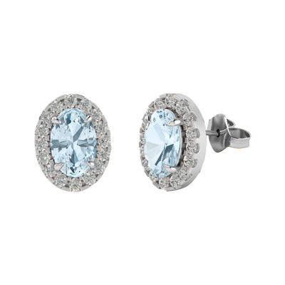 Halo Stud Oval Aquamarine 18K White Gold Earrings