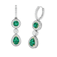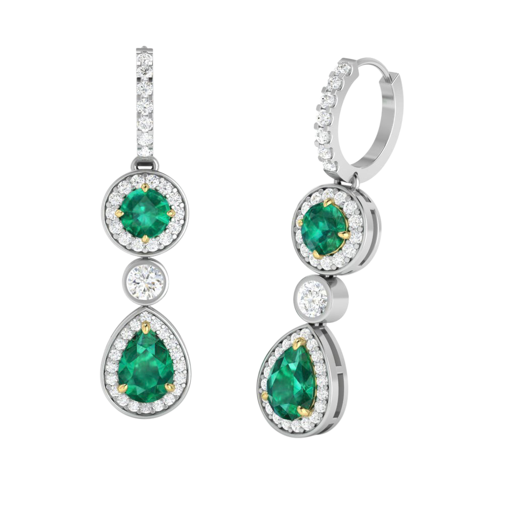 Pear Drop Round Emerald 18K White Gold Earrings