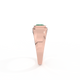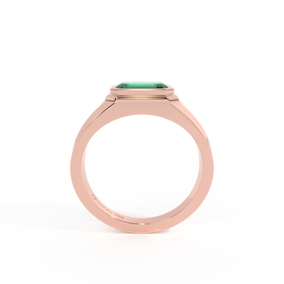 Cette pièce emblématique est sertie d'un Émeraude taillé en Émeraude, qui se dresse légèrement au-dessus de la bande 18K Or Rose dans une monture à lunette étagée. Les épaules s'effilent vers le centre, avec une tige arrondie pour un confort maximal. Un héritage moderne pour le quotidien.