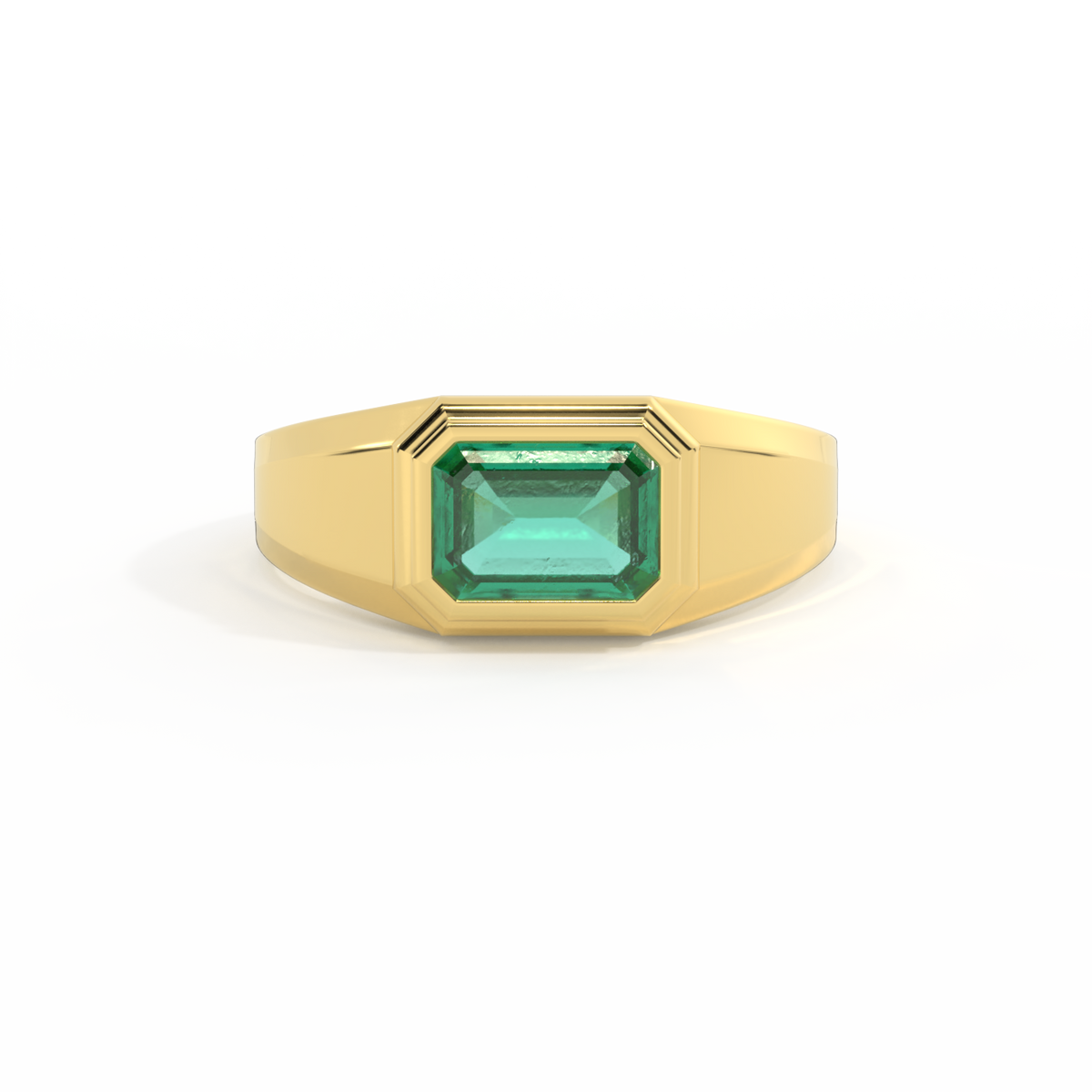 Signet Emerald Emerald 18K Yellow Gold Ring