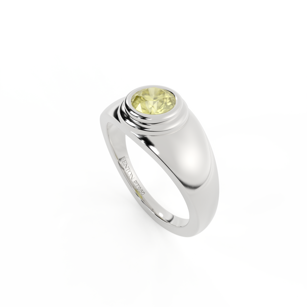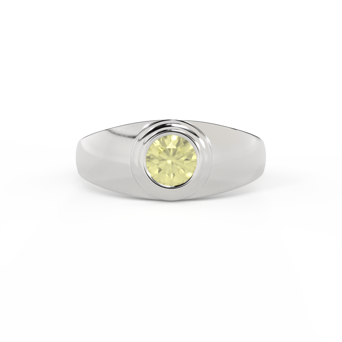 Signet Round Yellow Sapphire 18K White Gold Ring