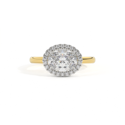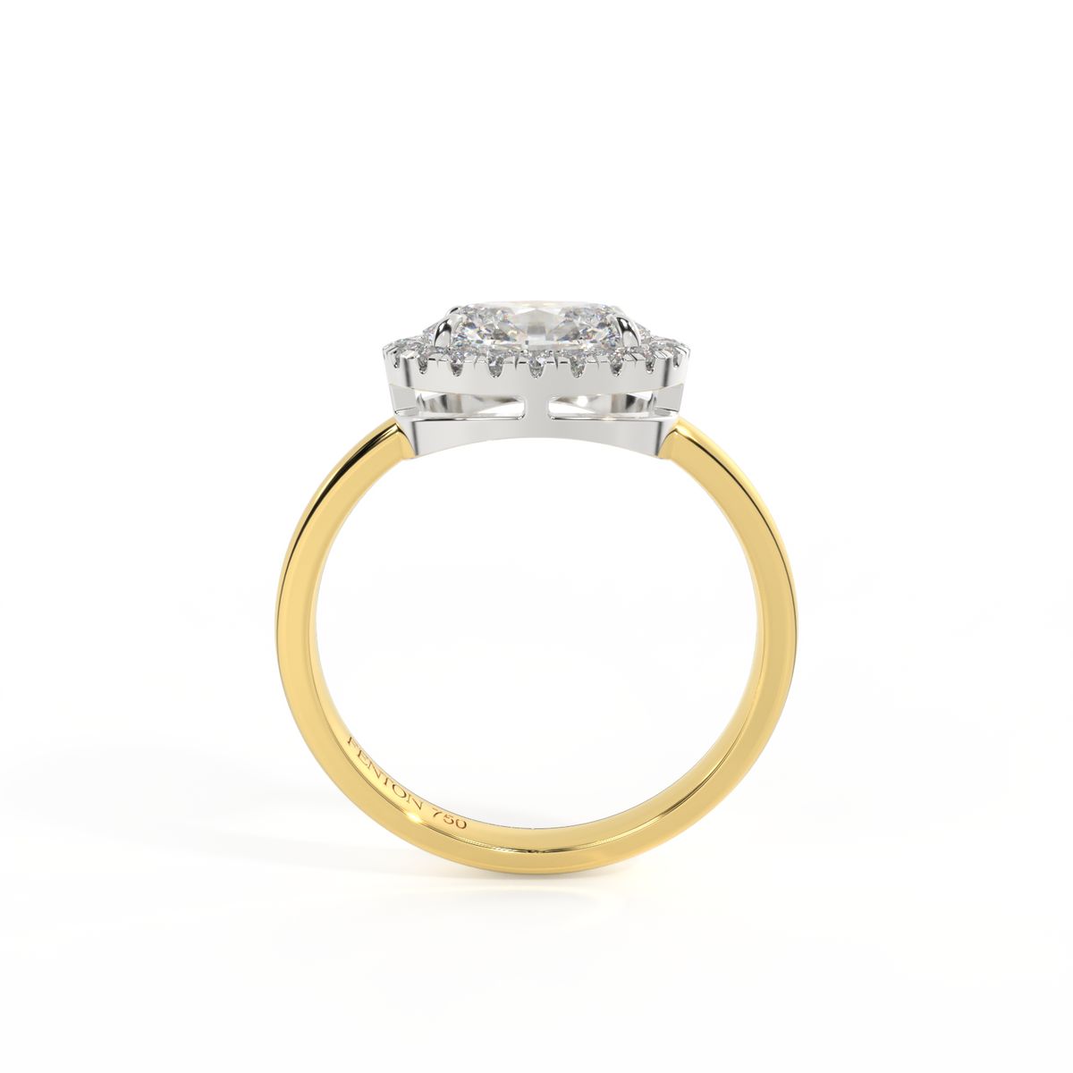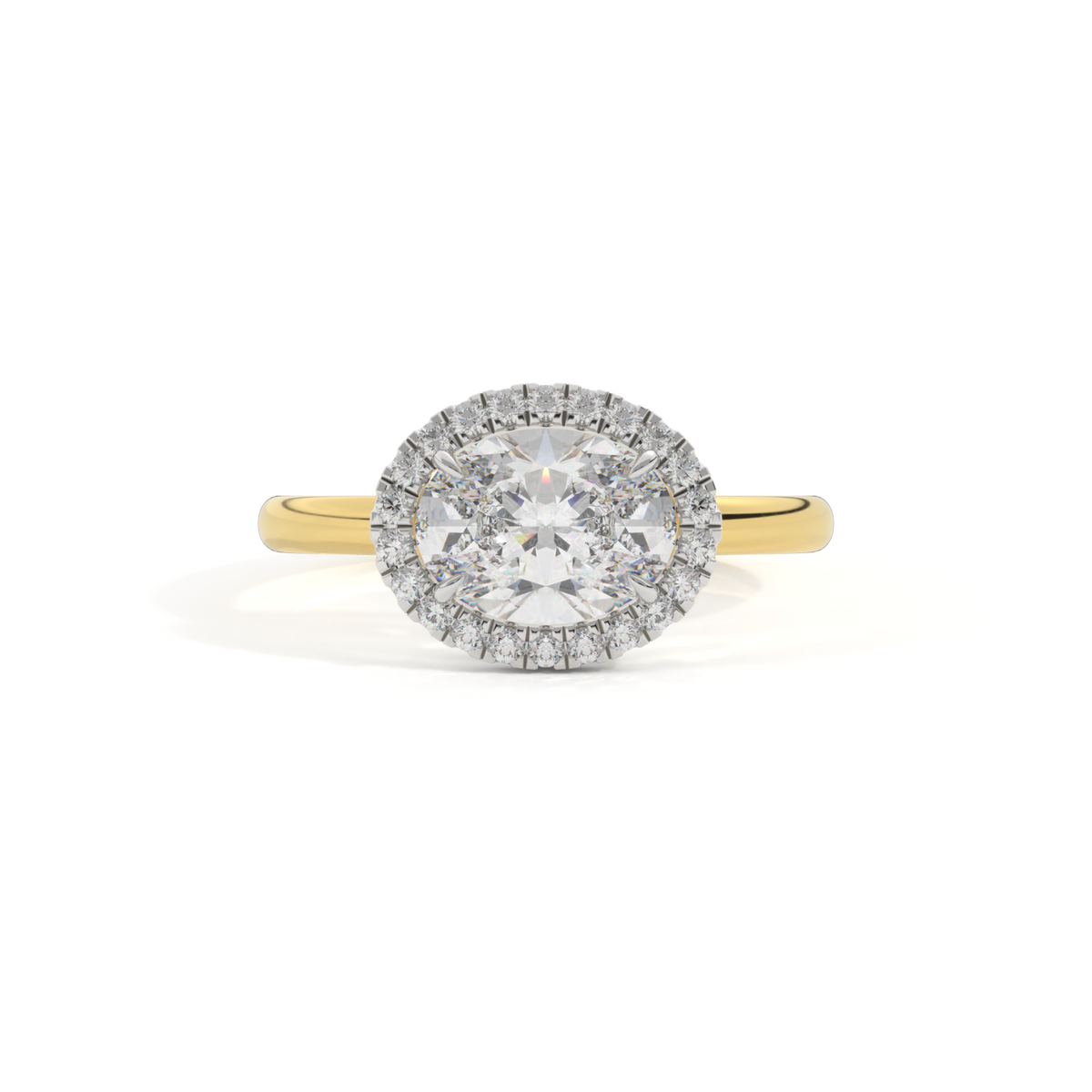 Lab Grown Solar Diamond East West Oval Emerald 18K Yellow Gold Ring