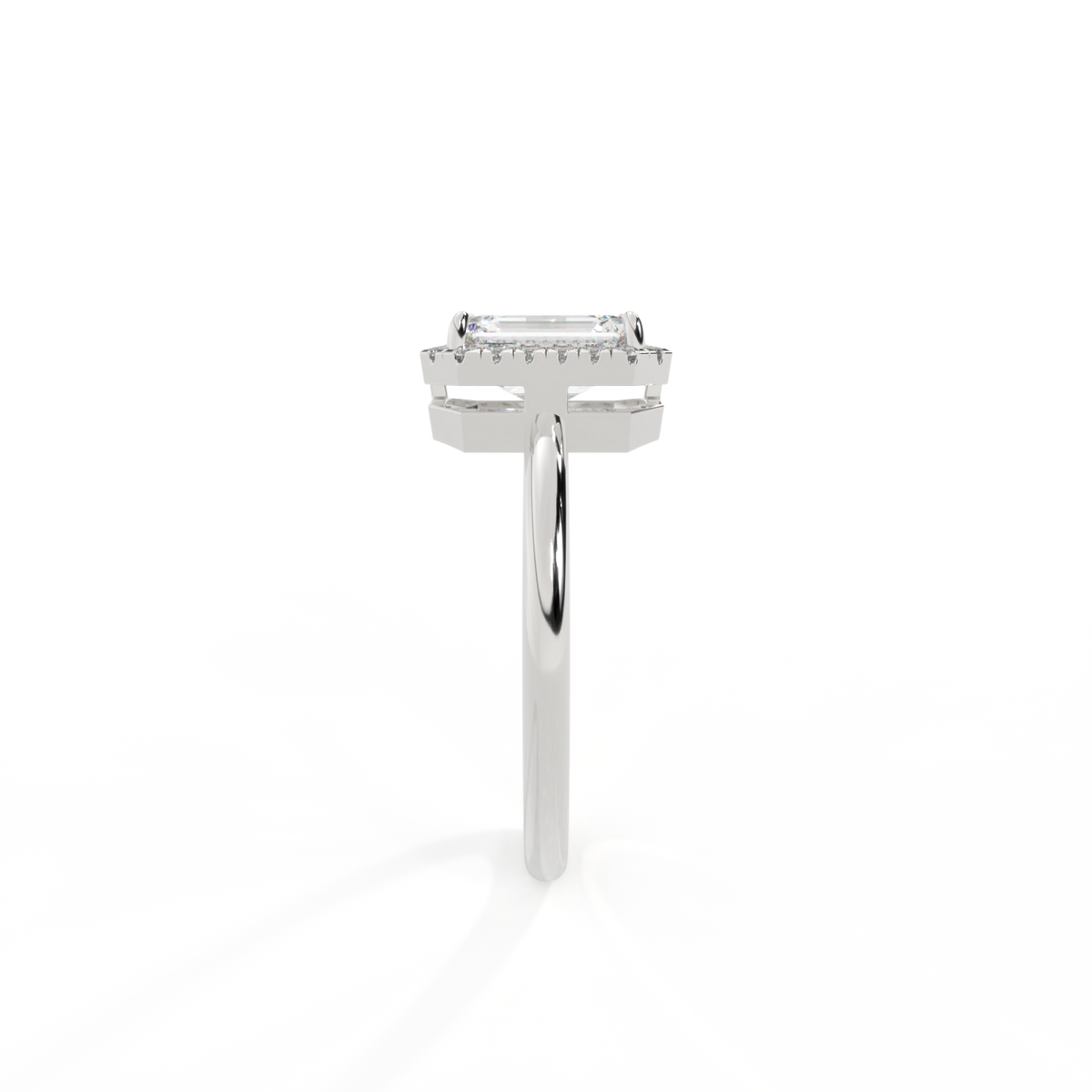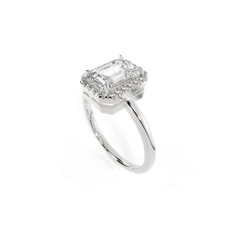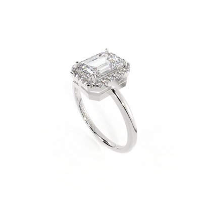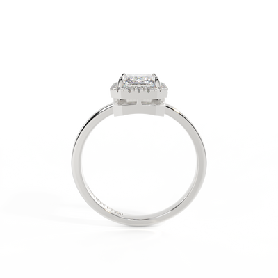 Lab Grown Solar Diamond Halo Emerald Cut Diamond Platinum Ring