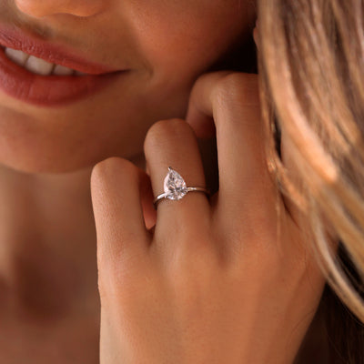 Lab Grown Solar Diamond Solitaire Pear Cut Platinum Ring
