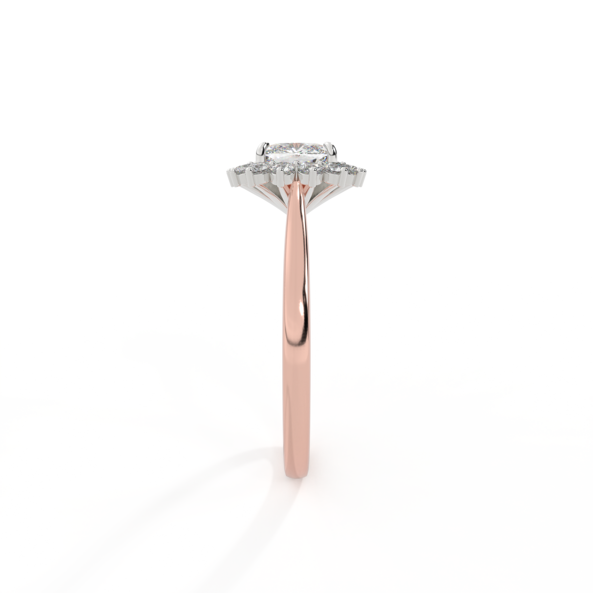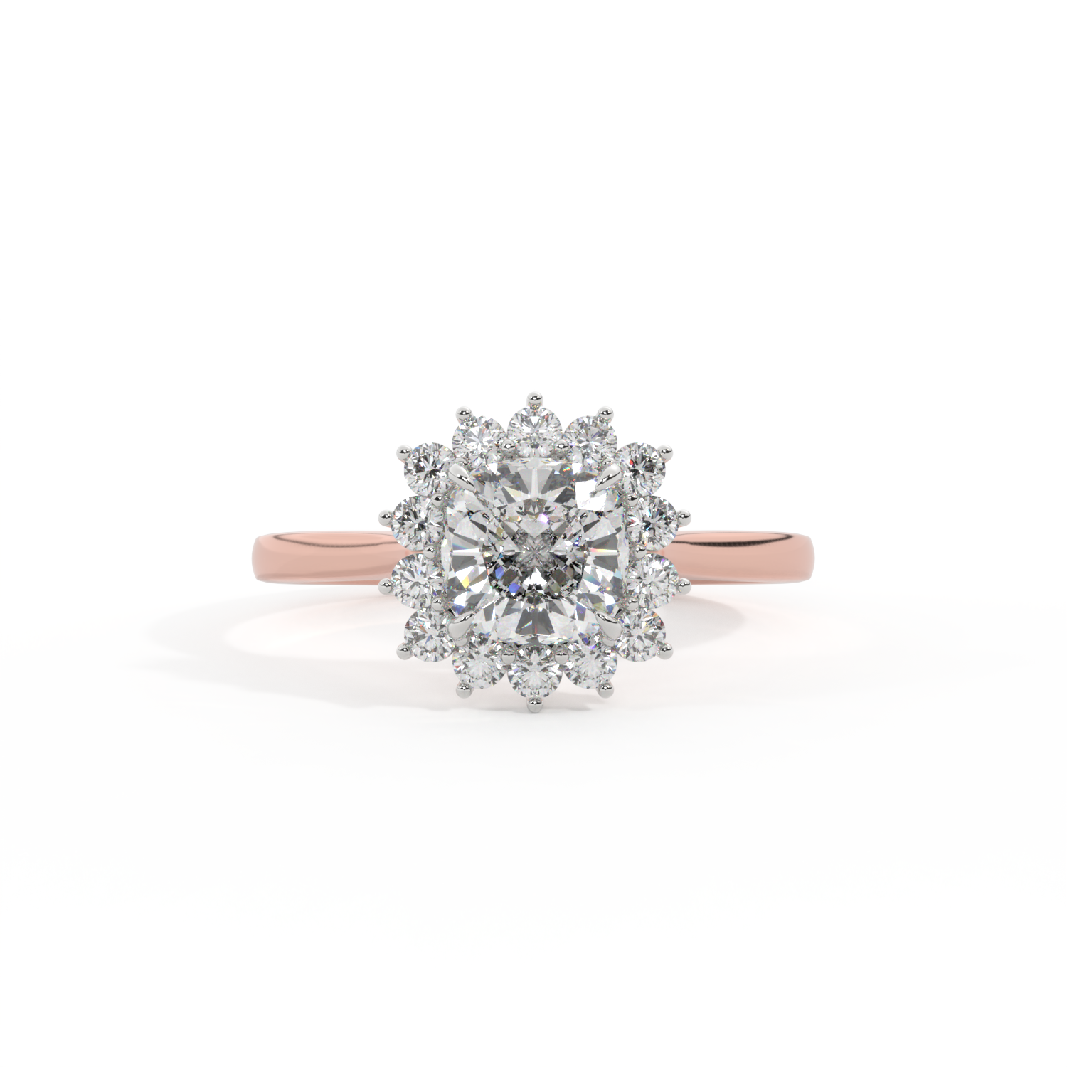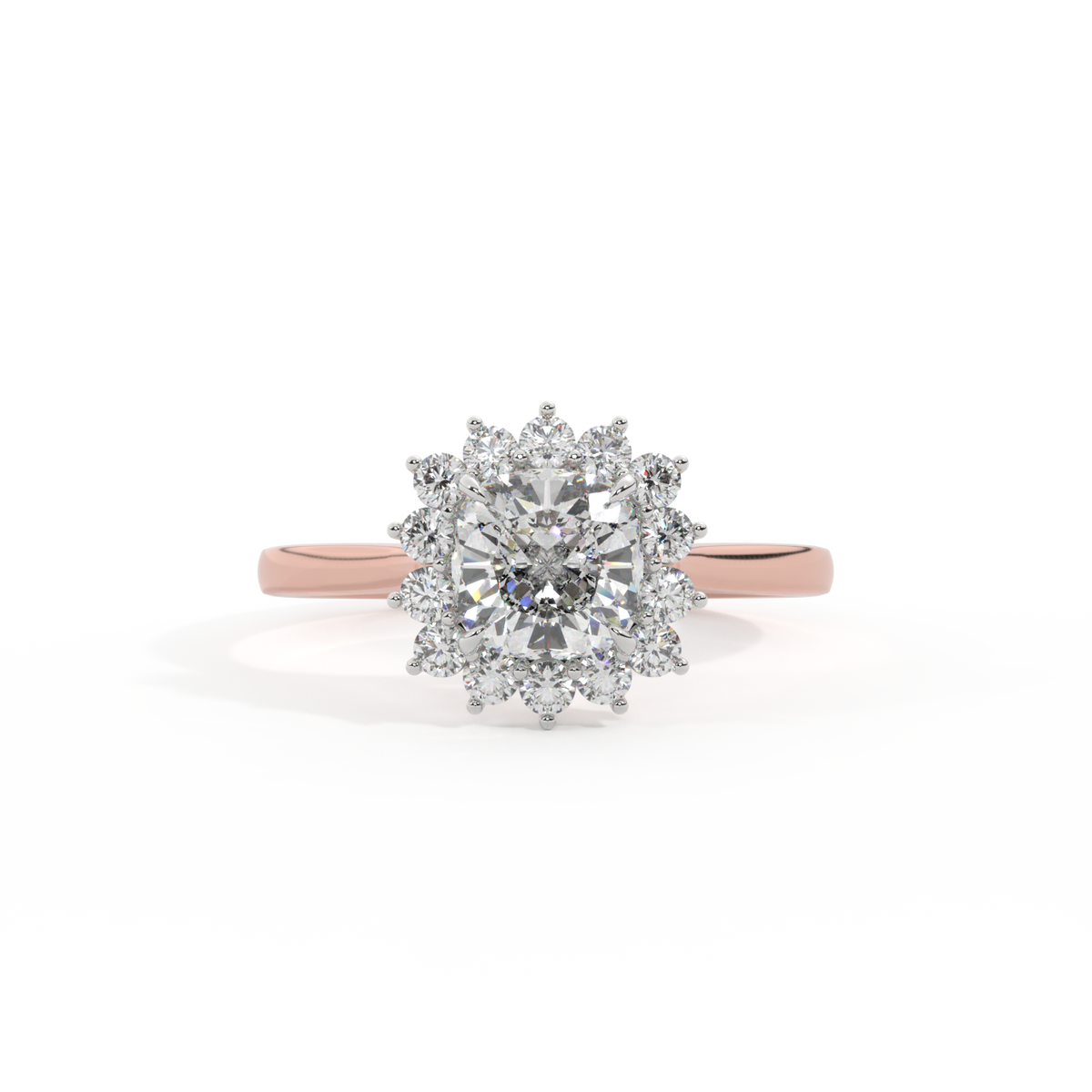 Lab Grown Solar Diamond Star Cushion Cut Diamond 18k Rose Gold Ring